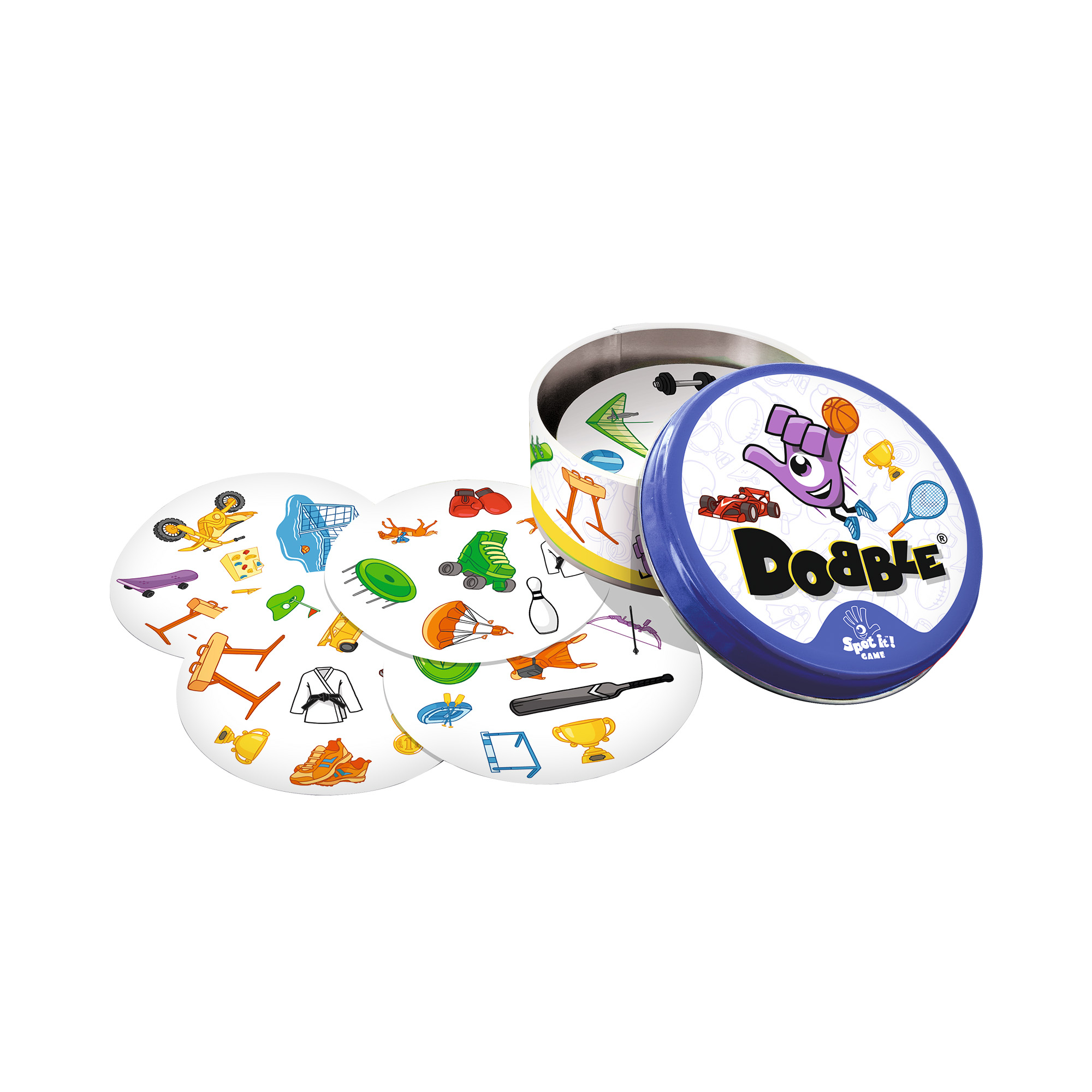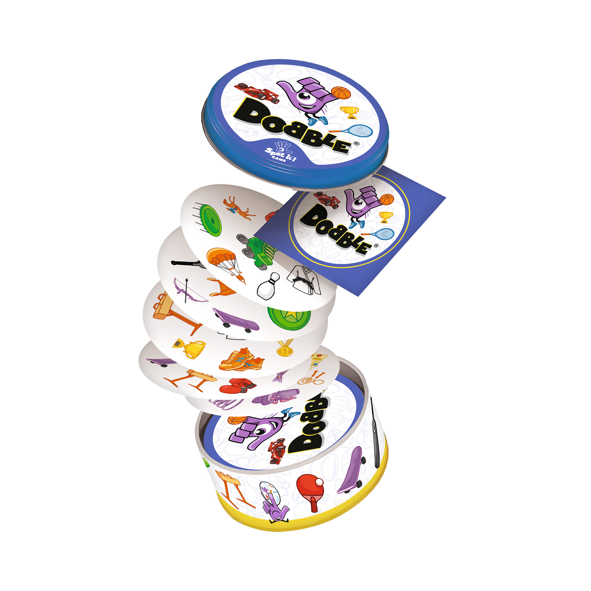 Postřehový bestseller Dobble vstupuje do světa sportu! Na každé kartě najdete 8 tematických obrázků. Máte rádi sport? Buďte první, kdo pojmenuje společný symbol mezi dvěma kartami. Fotbal, tenis, plavání, paragliding, lezení… Hráči zde hledají dva stejné symboly na kartách při různých verzích hry (v pravidlech je popsáno celkem 5 her). Zaujmou vás kulaté karty i jednoduchá pravidla vysvětlená doslova za pár sekund. Plechová krabička zaručuje bezpečí karet a jednoduše umožňuje mít hru vždy u sebe. Vyzkoušejte i vy postřehový fenomén Dobble a jistě budete překvapeni, jak i tak jednoduchá hra může být zábavná a zároveň naučná! Hra Dobble Sport obsahuje: 55 karet v plechové krabičce, česká, slovenská a rumunská pravidla.