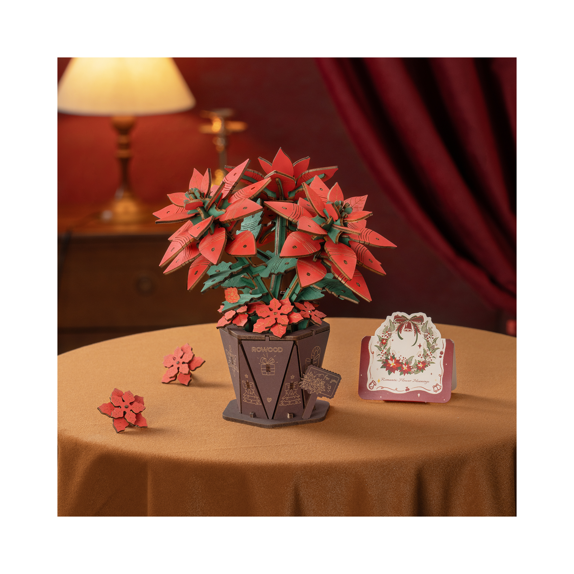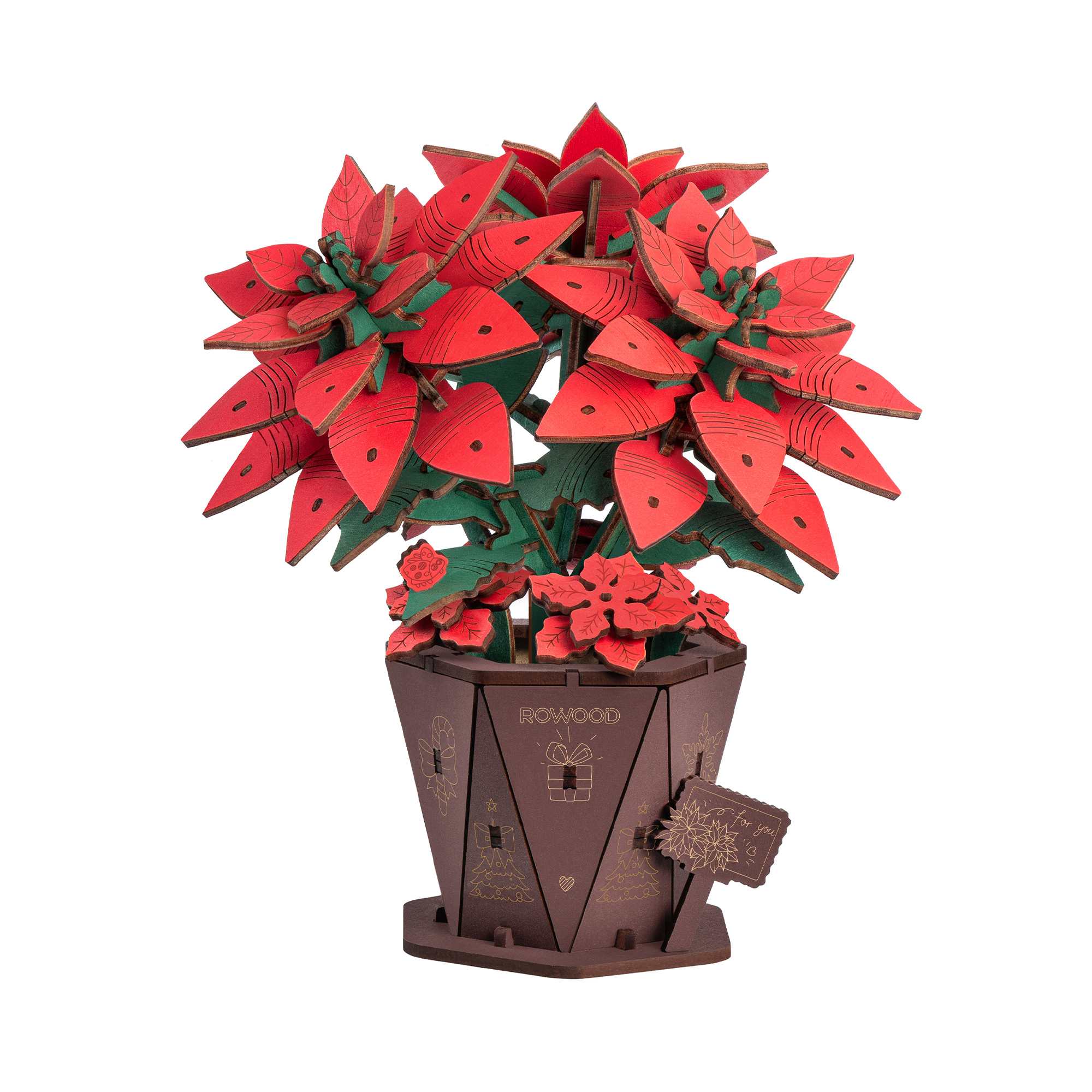 Darujte květinu, která neuvadne Vánoční hvězda je symbolem Vánoc, naděje, štěstí a nového začátku. K sestavení 3D stavebnice vánoční hvězdy vám stačí 1 hodina a odměnou za trpělivost při skládání je dřevěný model červené vánoční květiny v dřevěném květináči, který bude vám či obdarovanému dělat parádu hodně dlouhou dobu. S dřevěnou DIY (Do It Yourself = udělej si sám) stavebnicí Květina – Vánoční hvězda značky Robotime si díky očíslovaným dílkům a obrázkovému návodu květinu jednoduše postavíte úplně sami. Vše, co k tomu potřebujete, naleznete v balení. Po sestavení se tato červená vánoční hvězda stává okouzlující dekorací, která nejlépe vynikne na stole, parapetu či na poličce. Tip na vánoční dárek pro všechny fanoušky stavebnic, puzzle a milovníky skládání. Možnost napsat věnování do papírového přáníčka, které je součástí balení. Ponořte se do úchvatného světa z dřevěných dílků, které jsou precizně vyřezávané laserem a díky čepovému spoji do sebe krásně zapadají a drží pohromadě bez nutnosti použití lepidla. Technické informace Počet dílů: 153 Náročnost: 2/5 Odhadovaný čas sestavení: 1 hodina Rozměry květiny: 14,5 × 14,5 × 17 cm