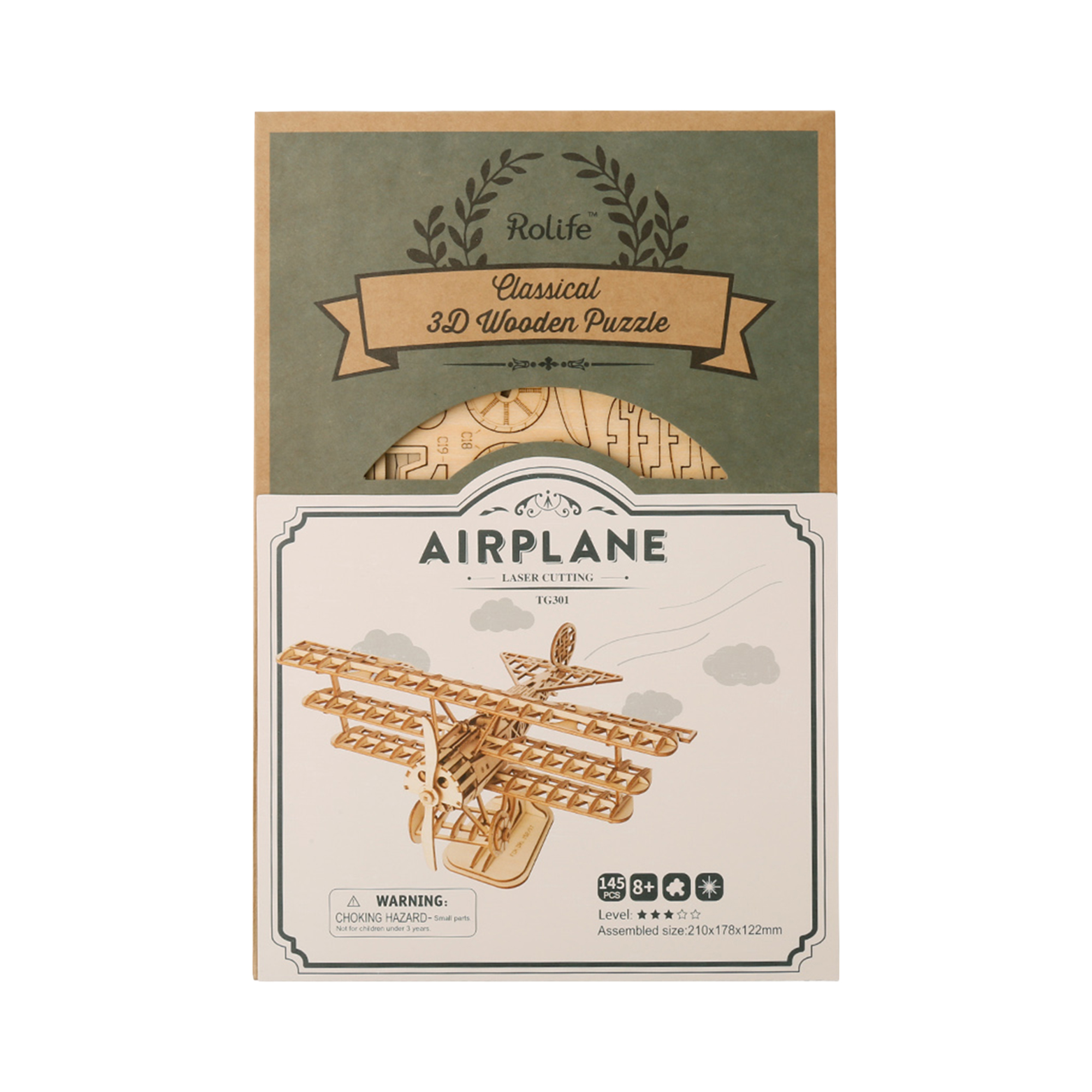 Kreativní stavebnice a dekorace v jednom S dřevěnou stavebnicí Historické letadlo značky Robotime si postavíte detailně propracovaný model trojplošníku, který zaujme autentickými detaily. Model je vyroben z kvalitních dřevěných dílků a během jeho sestavování zažijete nejen zábavu, ale i příjemný pocit z vlastnoručně odvedené práce. Složení stavebnice zabere přibližně 1 hodinu a zvládne ho dospělý i dítě od 8 let. Odměnou za trpělivost při skládání bude nádherný 3D model letadla, který ozdobí dětský pokoj, kancelář nebo sbírku modelů. S dřevěnou DIY (Do It Yourself = udělej si sám) 3D skládačkou si díky očíslovaným dílkům a obrázkovému návodu postavíte tento dřevěný trojplošník úplně sami. Vše, co potřebujete, naleznete v balení. Tip na jedinečný dárek pro všechny fanoušky letadel, 3D puzzle a trpělivé milovníky skládání. Ponořte se do úchvatného světa z dřevěných dílků, které jsou precizně vyřezávané laserem a díky čepovému spoji do sebe krásně zapadají a drží pohromadě bez nutnosti použití lepidla. Technické informace Počet dílů: 145 Náročnost: 3/5 Odhadovaný čas sestavení: 1 hodina Rozměr modelu: 21 × 17,6 × 12,1 cm