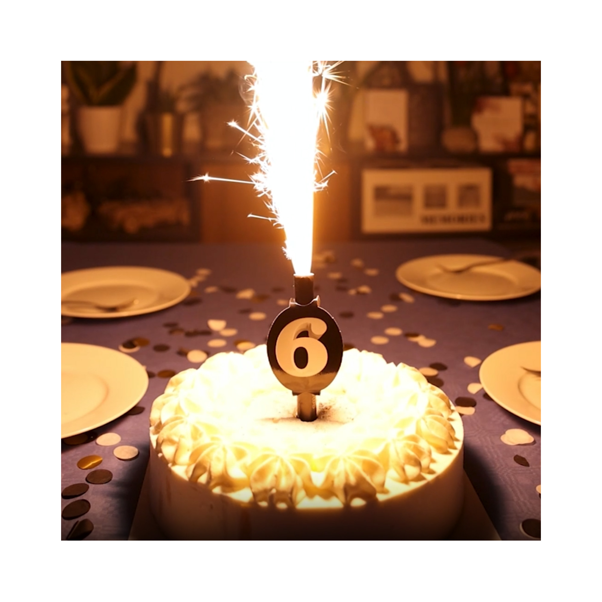 Dortové fontány v elegantním černobílém designu s číslicí dle výběru. Ideální pro oslavu narozenin nebo jiného významného jubilea, kdy chcete dort ozdobit efektním způsobem. Tyto fontány mají papírový výřez s potiskem číslic 0-9. Velikost: 12 cm Doba hoření: 50 sekund Balení obsahuje: 1 ks fontány Postup: Fontánu zapíchneme do dortu nebo do jiného měkkého podloží, před zapálením zkontrolujeme zda směřuje vzhůru koncem s tenkým papírem na povrchu. Fontánu zapalujeme vždy ve svislé poloze. Upozornění: Doporučujeme produkt zapalovat ve volném, nejlépe venkovním prostoru a v dostatečné vzdálenosti od stojících osob. Neumísťujeme k hořícím svíčkám ani k jiným hořlavým předmětům! Jako u všech hořlavin je třeba důsledně dbát na bezpečnost a přistupovat k ní jako k hořlavině.