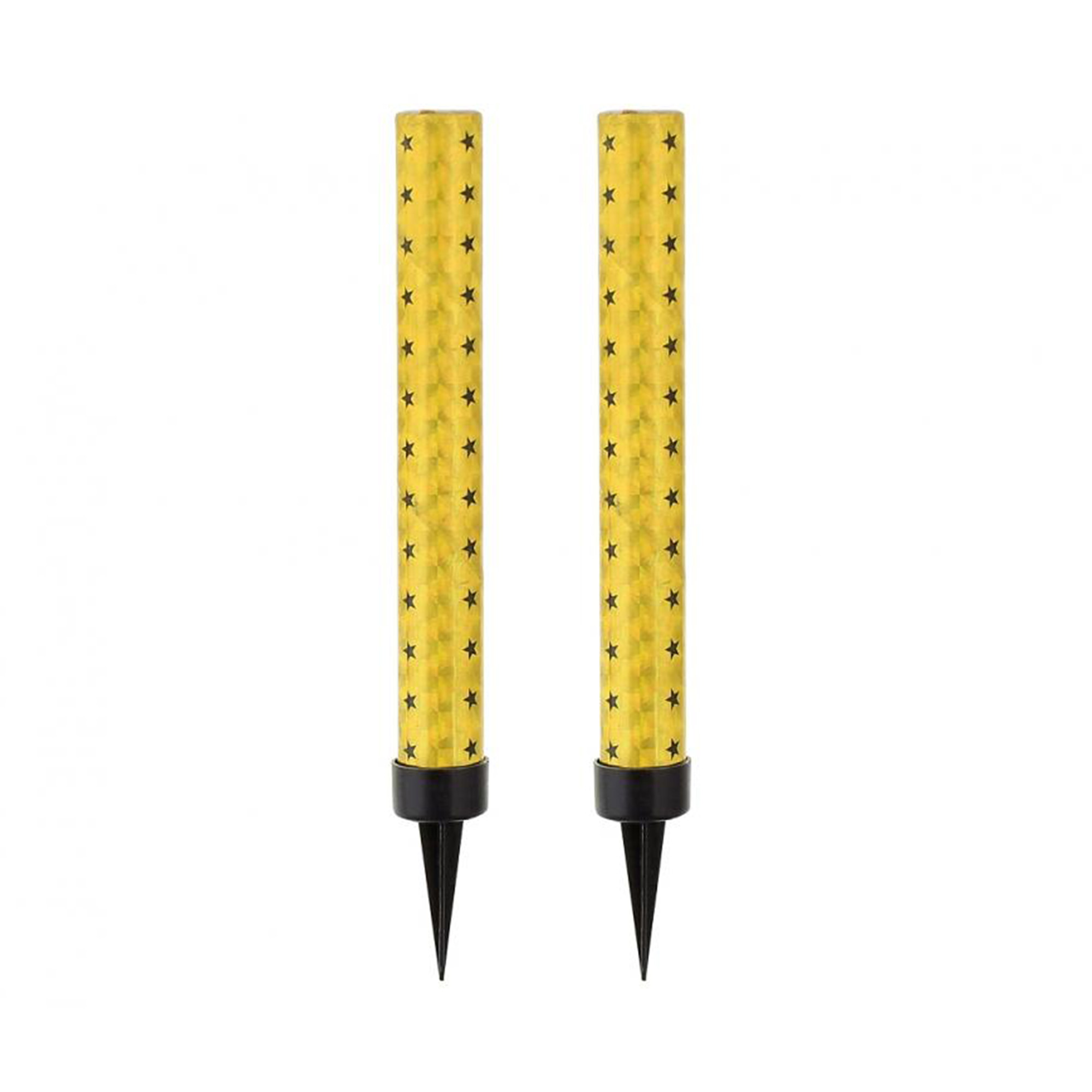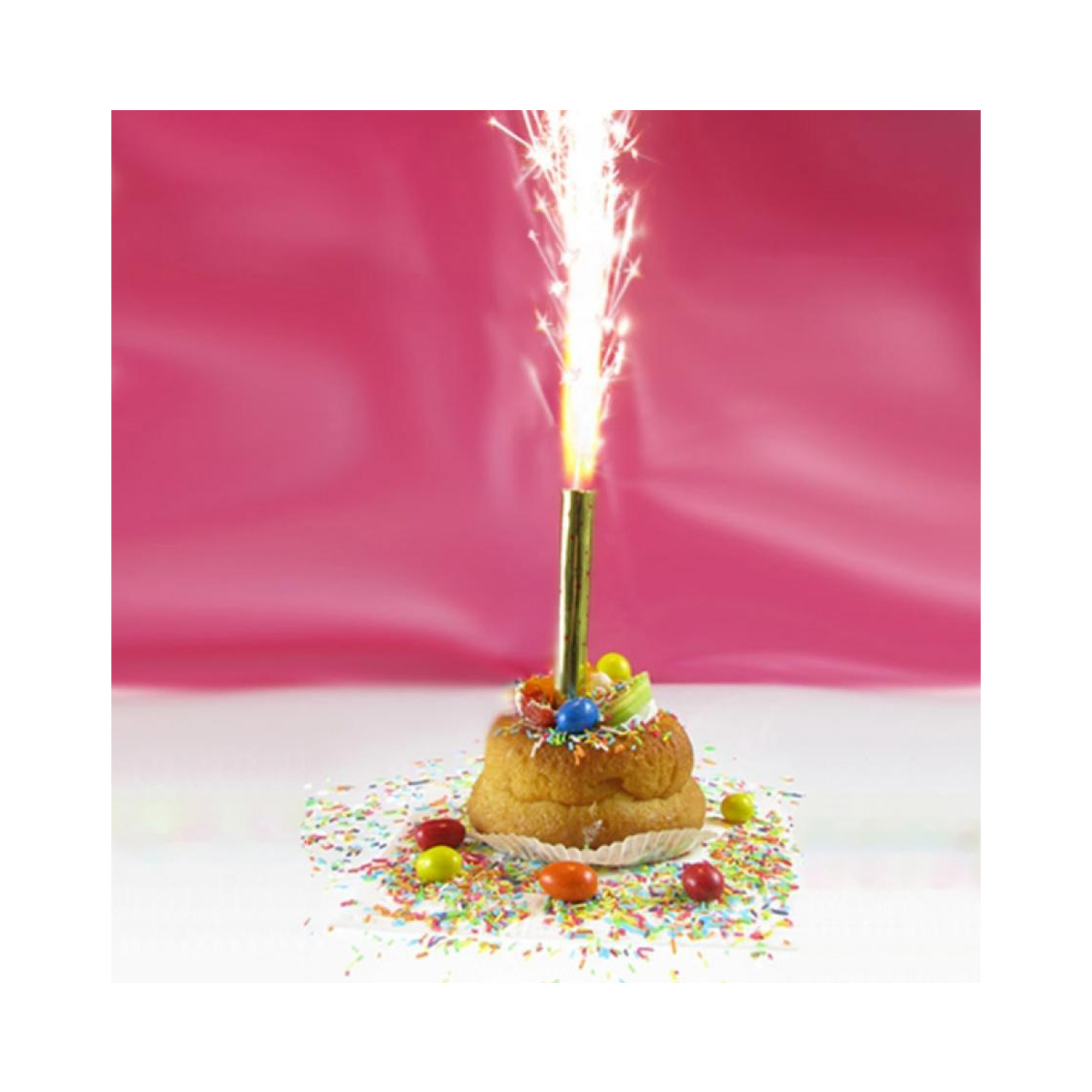 Dvě dortové fontány v elegantním zlatém provedení jsou ideální jako efektní prvek na oslavu narozenin nebo jiného významného jubilea. Zaujmou holografickým designem ve zlaté barvě, doplněným černými hvězdičkami. Každá fontána má plastovou špičku, která zajišťuje její stabilní svislou polohu. Výška: 12 cm Průměr: 10 mm Doba hoření: 40 sekund Balení obsahuje: 2 ks fontán s plastovou špičkou a návod k použití Postup: Fontánu zapíchneme do dortu nebo do jiného měkkého podloží, před zapálením zkontrolujeme zda směřuje vzhůru koncem s tenkým papírem na povrchu. Fontánu zapalujeme vždy ve svislé poloze. Upozornění: Doporučujeme produkt zapalovat ve volném, nejlépe venkovním prostoru a v dostatečné vzdálenosti od stojících osob. Neumísťujeme k hořícím svíčkám ani k jiným hořlavým předmětům! Jako u všech hořlavin je třeba důsledně dbát na bezpečnost a přistupovat k ní jako k hořlavině. Výrobek není určen pro použití osobami mladšími 18 let!