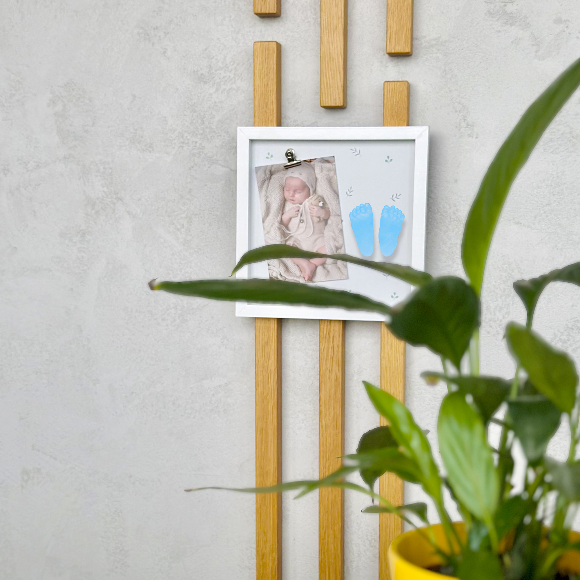 Vzpomínky na první měsíce života vašeho chlapečka si zaslouží něco výjimečného. Tenhle rámeček spojí jeho fotku s plastickým 3D odlitkem ručiček nebo nožiček a vytvoří krásnou památku, která vám bude dělat radost každý den. Rámeček pro miminko se sadou na 3D odlitky – pro chlapečka je laděn do jemných neutrálních barev, které decentně doplní fotku vašeho miminka s modrými odlitky nožiček i ručiček. Pokud ale chcete výsledek ještě minimalističtější, můžete si odlitky vyrobit v průhledné variantě. Stačí, když při jejich tvorbě vynecháte modrý pigment. Součástí balení je sada na vytvoření 3D odlitku, která je bezpečná pro dětskou pokožku, a návod, který vás provede celým procesem. Rámeček můžete snadno zavěsit na zeď. Tento fotorámeček je nejen krásnou připomínkou prvních okamžiků života miminka, ale také originálním dárkem pro nastávající rodiče, ke křtinám nebo jako dárek k oslavě narození chlapečka. Balení obsahuje: bílý fotorámeček, klip na přichycení fotografie, kompletní sadu na vytvoření modrého 3D odlitku (tyčinku na míchání, modrý pigment, alginátový prášek, činidlo), oboustrannou lepicí pásku a návod. Velikost rámečku: 23,2 × 23,2 × 1,8 cm Vhodný na fotografii o rozměru: 10 × 15 cm