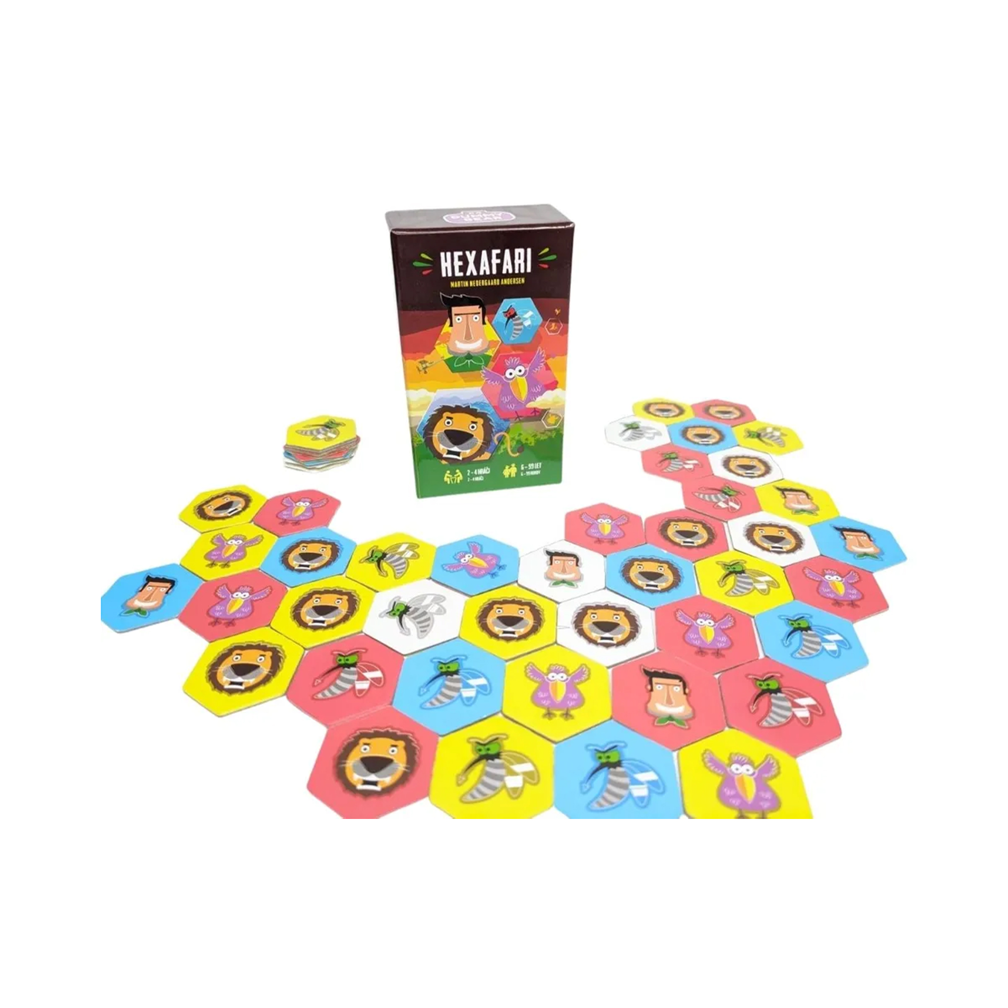 Ve hře Hexafari se snažíte přikládat a otáčet oboustranné dílky tak, abyste propojili 7 dílků vaší postavy nebo barvy. V ruce máte 3 dílky, po každém přiložení si vezmete jeden nový z horní části jednoho ze 4 komínků. Ve svém tahu přiložíte 1 dílek k postavě, která je o 1 úroveň slabší než váš dílek. Postavu tím porazíte a její dílek otočíte Komponenty jsou jazykově nazávislé. Hra Hexafari obsahuje: 48 šestiúhelníkových oboustsranných dílků, česká a slovenská pravidla.