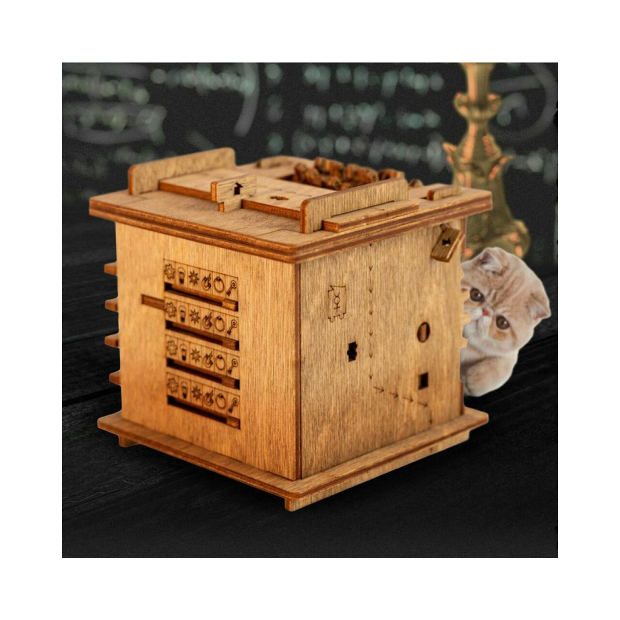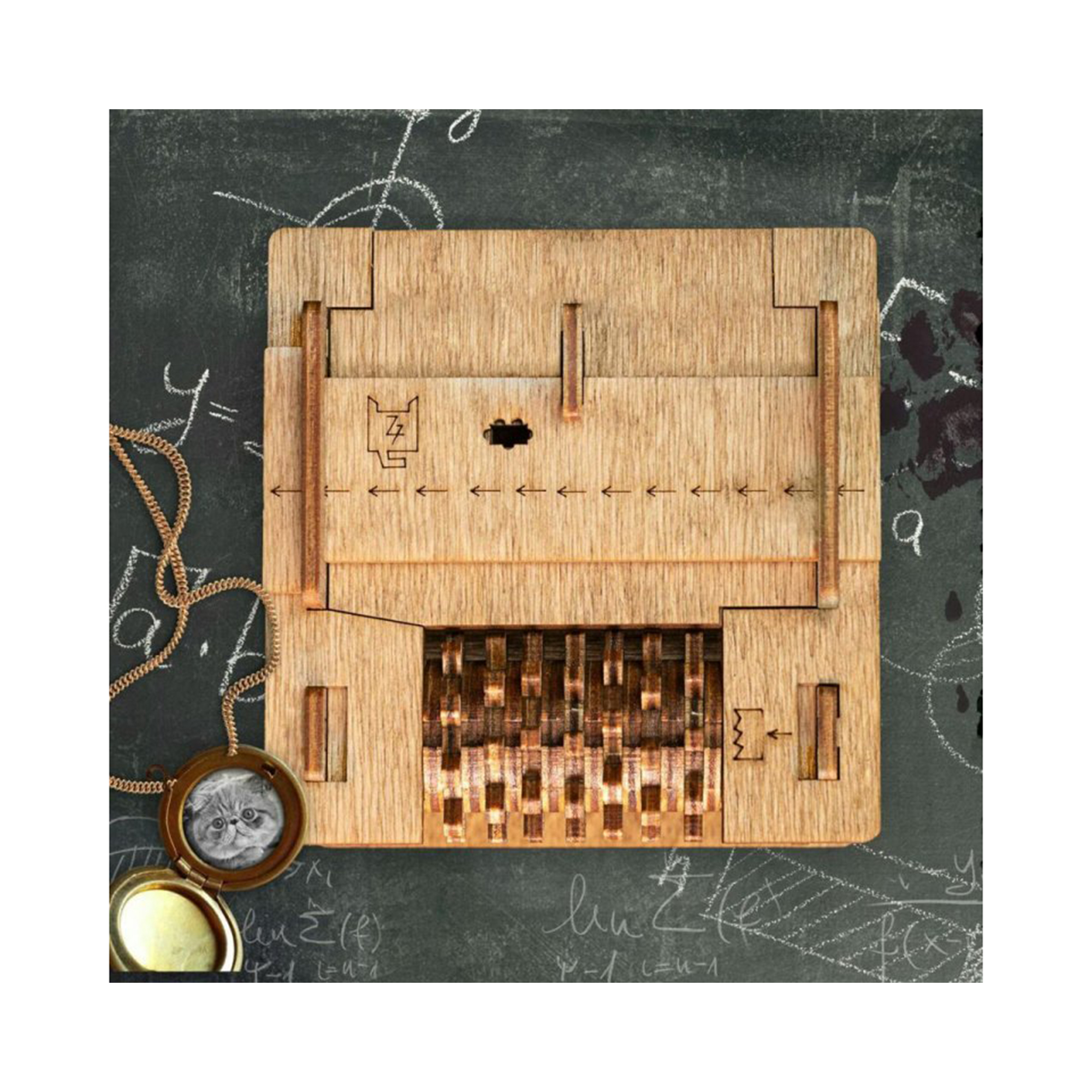 Schrödingerova kočka je myšlenkový experiment rakouského fyzika Erwina Schrödingera, který ilustruje problém kvantové mechaniky v každodenních předmětech. V tomto experimentu je kočka a nějaký jed uzamčeny v krabici. Kvantová mechanika říká, že po chvíli bude kočka mrtvá i živá zároveň. Bohužel Schrödinger kvůli své zaneprázdněnosti na kočku úplně zapomněl. Jsme si ale jisti, že kočka stále žije a musíte ji zachránit! hlavolam můžete využít i jako originální dárek, do něhož schováte třeba šperk, peníze nebo nějakou drobnost. Pokud se rozhodnete si hlavolam nechat, můžete jej po vyřešení předat dál svým přátelům a porovnat si čas vyřešení.  Hlavolam je vyrobený z vysoce kvalitního dřeva a obsahuje 52 laserem vyřezaných dílků