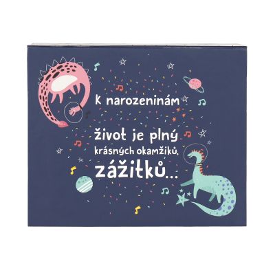 Hrací krabičky jsou perfektním tipem, když chcete darovat peníze, dárkovou kartu nebo i drobný dárek. Uvnitř krabičky je navíc malá obálka, kam lze hotovost nebo dárkovou kartu vložit. Po otevření krabičky začne hrát pěkná melodie. Doba hraní krabičky je cca 20 – 30 sekund. Vnější rozměry: 11 × 9 × 3,5 cm Vnitřní rozměry: 10,7 × 8 × 2,4 cm Rozměry obálky: 8,7 × 7,2 cm