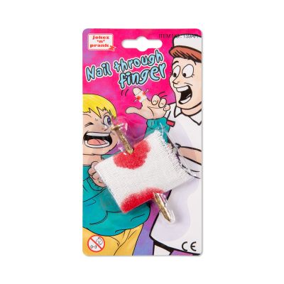 Hřebík skrz prst – děsivá iluze, která vyvolá pořádný šok! Vložte prst do krvavého obvazu s hřebíkem a ukažte ho ostatním. Na první pohled to vypadá, že vám skrz prst projel rezavý hřebík – reakce v podobě zděšení a smíchu zaručena. Dokonalá lumpárna, která funguje i jako doplněk kostýmu na Halloween. Prozkoumejte další bláznivé kousky z kategorie Ptákoviny a postarejte se o pořádnou dávku smíchu. Rozměry: 6,7 × 4,3 cm Balení obsahuje: 1 ks falešného hřebíku s obvazem