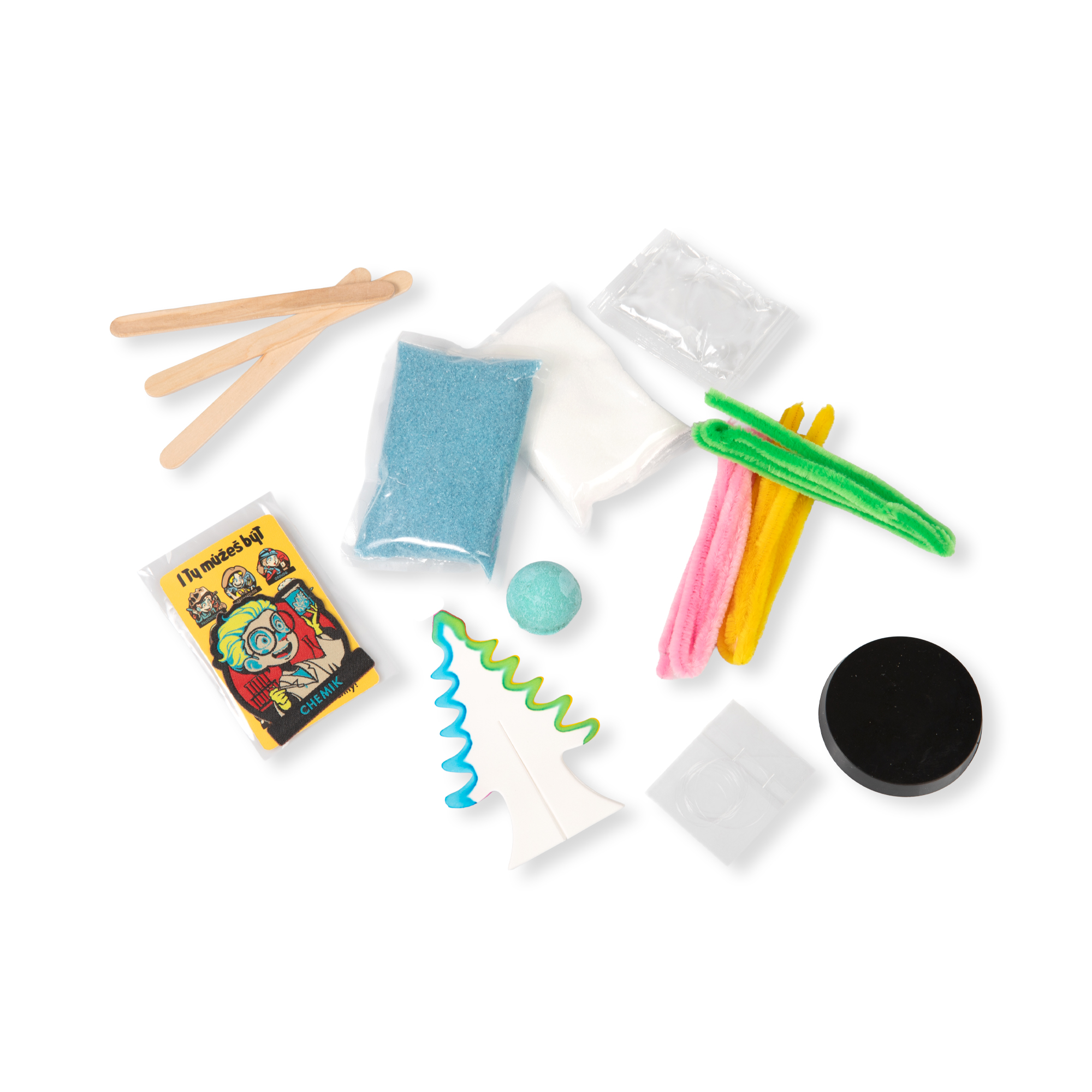Připravte se na cestu vědeckého zkoumání, vypěstujte si krásné krystaly a prozkoumej jejich fascinující svět! Díky přiloženým komponentům můžete vypěstovat třpytivý krystal, krystalový stromeček a vyrobit si krystalovou květinu. Přinášíme vám celou kolekci hravých sad, které dětem zábavnou formou přibližují svět různých povolání! Každá sada je naučí něco jiného – děti se mohou stát archeologem, astronomem, dobrodruhem nebo třeba lovcem pokladů. Součástí každé sady je originální samolepící nášivka s logem, které si děti mohou sbírat jako odznaky svých dovedností. Ideální dárek pro malé badatele a tvořivé duše! Sada Chemik obsahuje: 1 zárodečný krystal, 1 krystalový prášek, 3 míchátka, 1 růstový balíček ke krystalovému stromu, 1 kamenec,  6 čističů dýmky, 1 nit, 1 nášivku Chemika, návod.