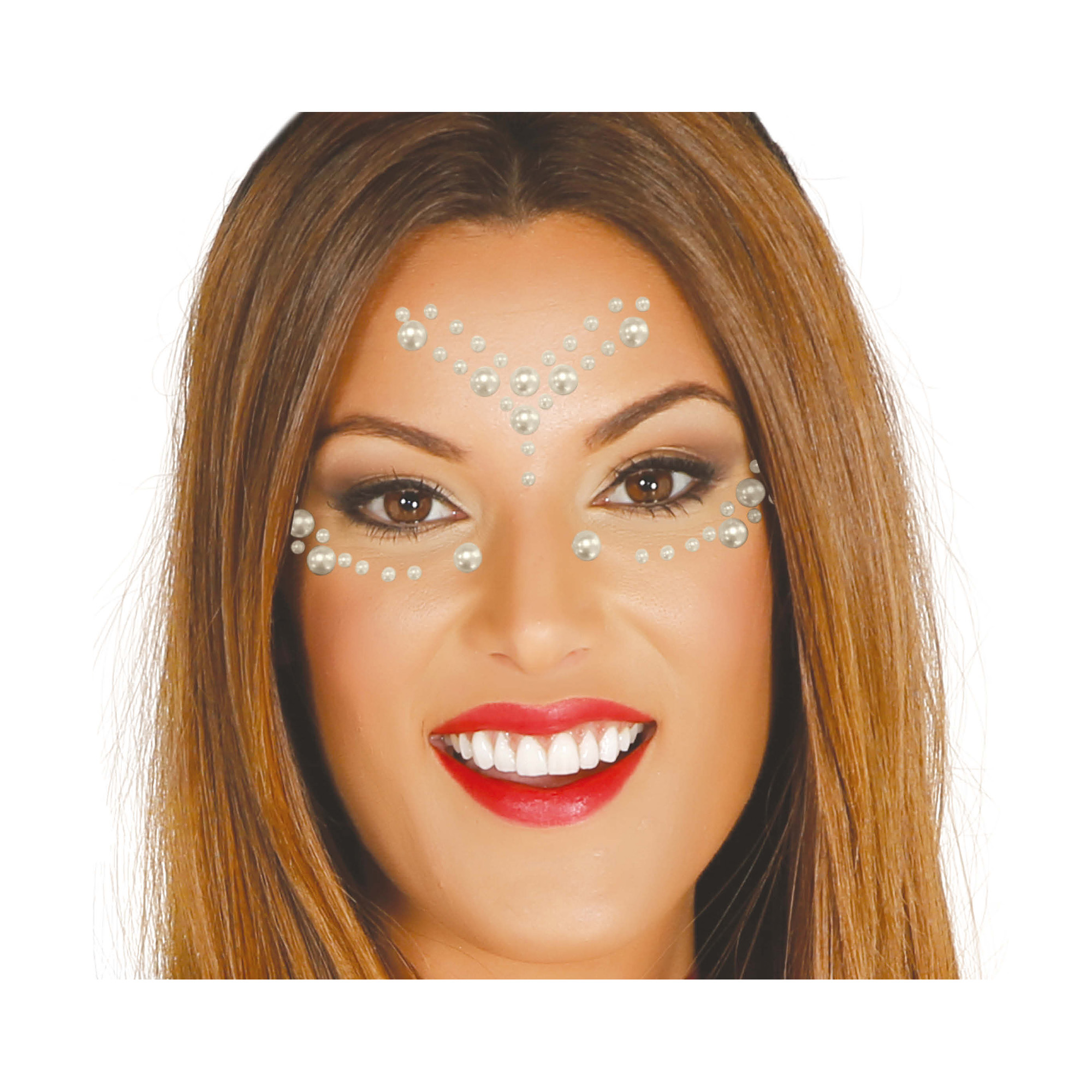 sada samolepicích kamínků ve vzhledu perliček. Jednoduše si ozdobte obličej, tělo nebo nehty a dolaďte svůj párty outfit k dokonalosti. Tato sada obsahuje obrázek obličeje, kde jsou jednotlivé perličky rozmístěny, což usnadňuje samotnou aplikaci na obličej. Buďte na párty nebo festivalu nepřehlédnutelní! Balení obsahuje: dekorační set kamínků na obličej a tělo