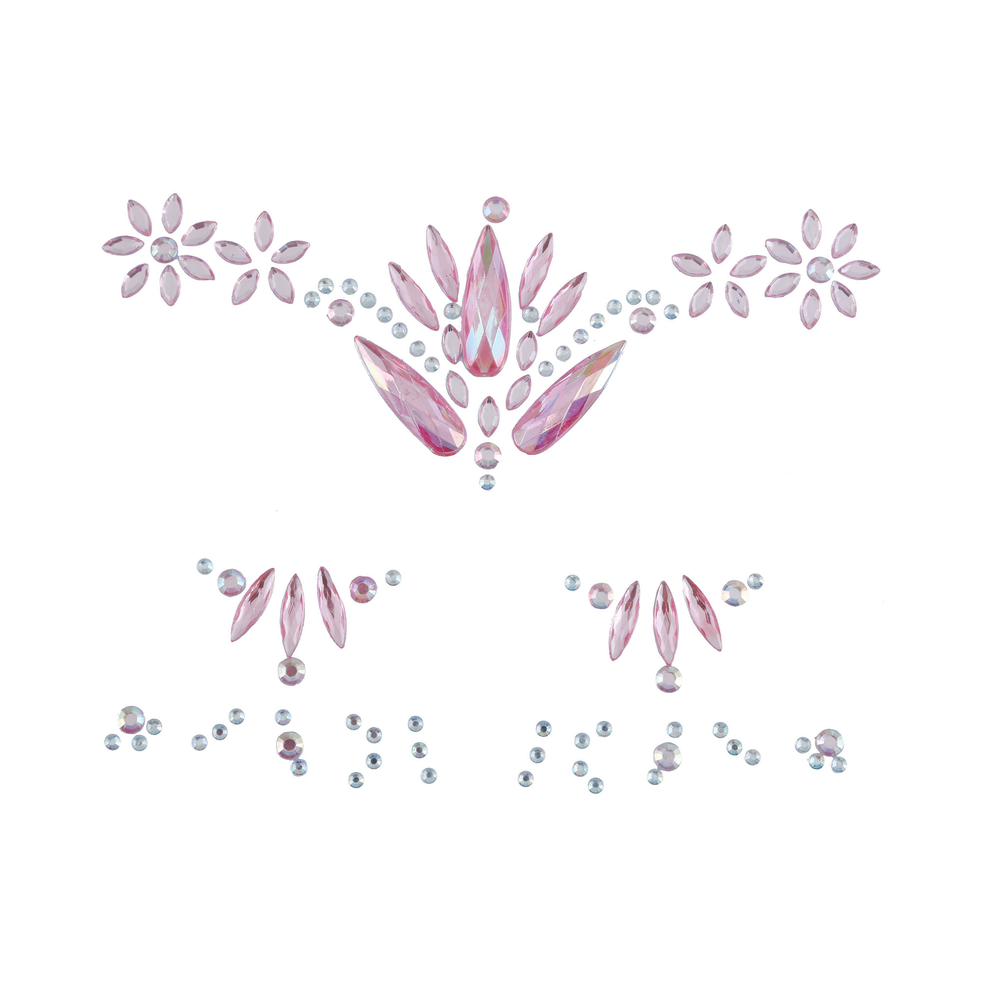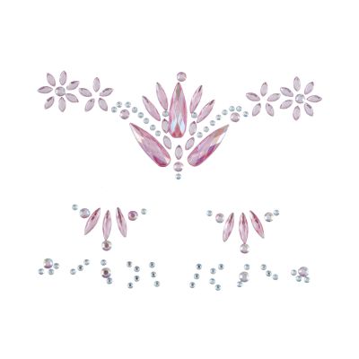 Sada světle růžových samolepicích kamínků ve vzhledu drahokamů. Jednoduše si ozdobte obličej, tělo nebo nehty a dolaďte svůj párty outfit k dokonalosti. Tato sada obsahuje obrázek obličeje, kde jsou jednotlivé drahokamy rozmístěny, což usnadňuje samotnou aplikaci na obličej. Buďte na párty nebo festivalu nepřehlédnutelní! Balení obsahuje: dekorační set kamínků na obličej a tělo