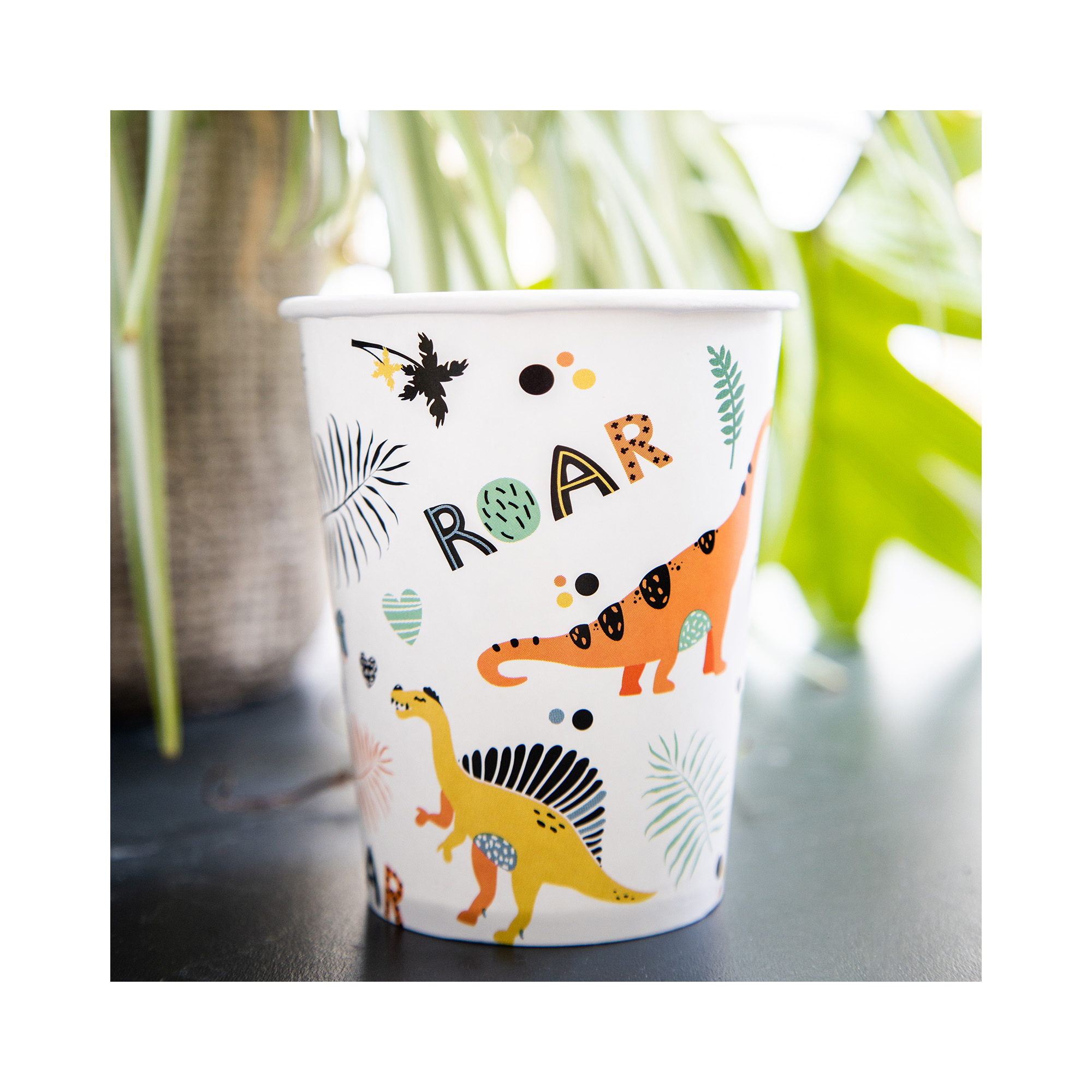 Balení šesti papírových kelímků s motivem dinosaurů je skvělou volbou, jak stolování na narozeninové oslavě vyřešit stylově a prakticky. Kelímky jsou v bílé barvě s veselým barevným potiskem a využijete je na tematické párty nebo dětské narozeninové oslavy. Pro další dekorace a doplňky s dino motivem můžete prozkoumat naši tematickou kategorii Dinosauři. Objem: 250 ml Balení obsahuje: 6 ks laminovaných papírových kelímků