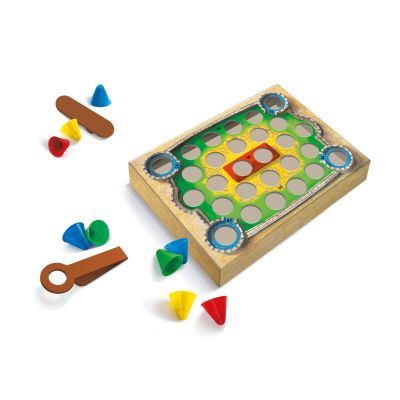 Nová verze oblíbené hry Kloboučku hop!, ve které odpalujete kloboučky buď pomocí odpalovací rampy nebo pomocí katapultu a snažíte se zasáhnout terč. Předveďte svoji přesnou mušku v nestárnoucí hře Kloboučku hop! Umístěte terč doprostřed stolu. Vzdálenost odpaliště od terče a počet kol určete dohodou podle zkušenosti hráčů. Každý hráč si vezme 4 kloboučky (jeden klobouček od každé barvy). Hráč na tahu si nejdříve vybere, jestli chce střílet pomocí odpalovací rampy nebo katapultu. Následně střílí všemi svými kloboučky na terč. Jestliže klobouček zapadne do otvoru v terči, hráč si započítá body podle sekce dopadu. Při shodě barvy kloboučku s barvou sekce na terči si hráč počítá dvojnásobek bodů. Vítězí hráč s nevyšším počtem bodů. Hra Kloubočku hop! obsahuje: 12 kloboučků ve 4 barvách, 1 odpalovací rampu, 1 katapult a 1 terč.