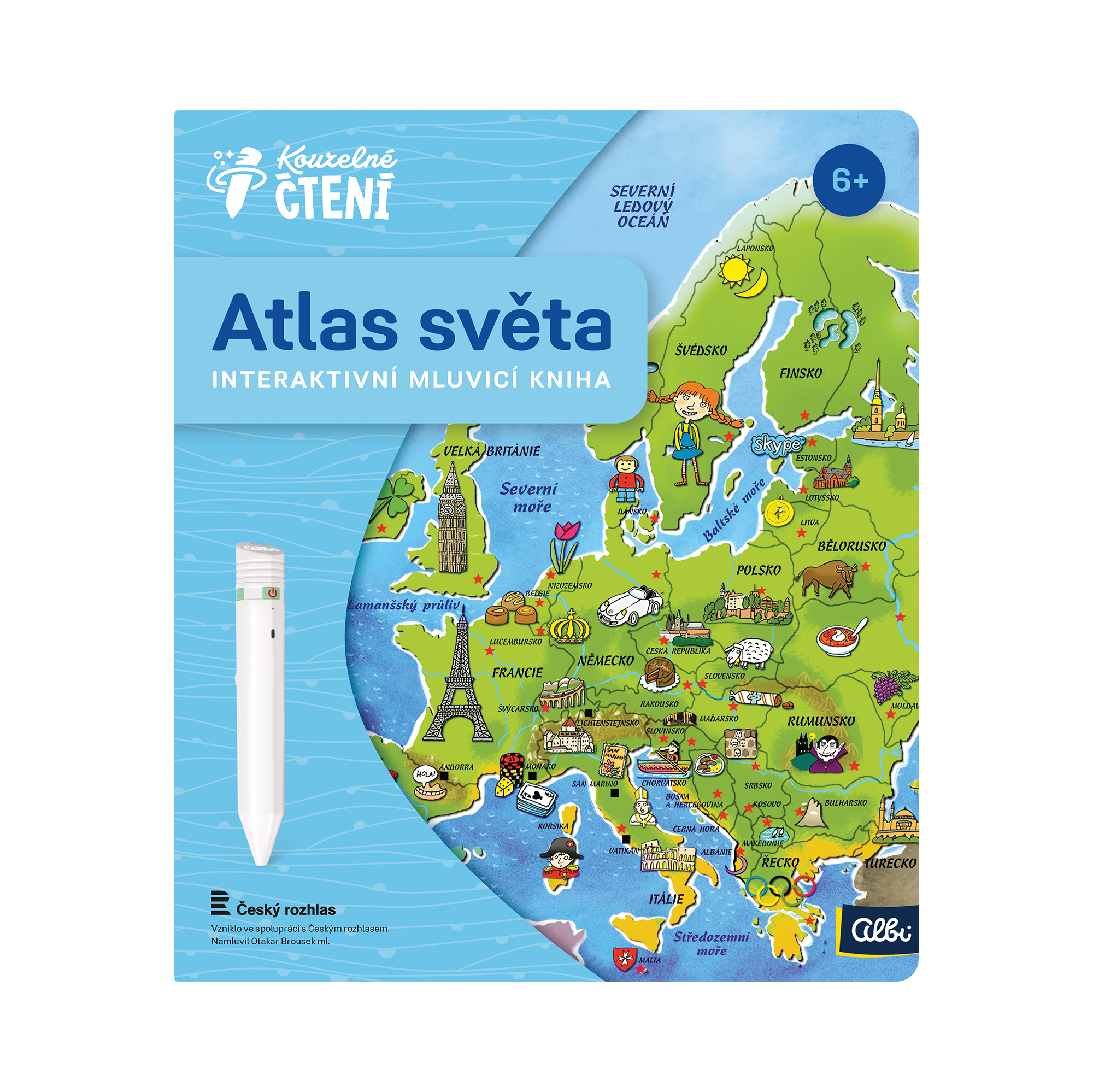 Objevte krásy naší planety! Seznamte se se všemi kontinenty a oceány světa. Zjistěte, jak se všechny státy a jejich hlavní města jmenují a jaké zajímavosti můžete v jednotlivých státech obdivovat. Tato kniha obsahuje osm různých map. Na jednotlivých stranách se seznámíte se všemi kontinenty, poznáte země na naší planetě a zjistíte, kde tyto země leží. Nechybí zde ani oceány, moře, velké řeky a pohoří, které jsou nedílnou součástí naší planety. Obrázky na mapách vám ukáží, jaká zvířata, stavby či jiné zajímavosti můžete v jednotlivých zemích najít. Své znalosti si pak můžete ověřit pomocí zábavných kvízů, které naleznete na každé dvojstraně. Obsahuje přes 1800 zvuků a textů. ZVUKOVÉ UKÁZKY Poslechněte si několik ukázek z knihy Atlas světa – Kouzelné čtení. Namluvil: Otakar Brousek ml. Kniha vznikla ve spolupráci s Českým rozhlasem.