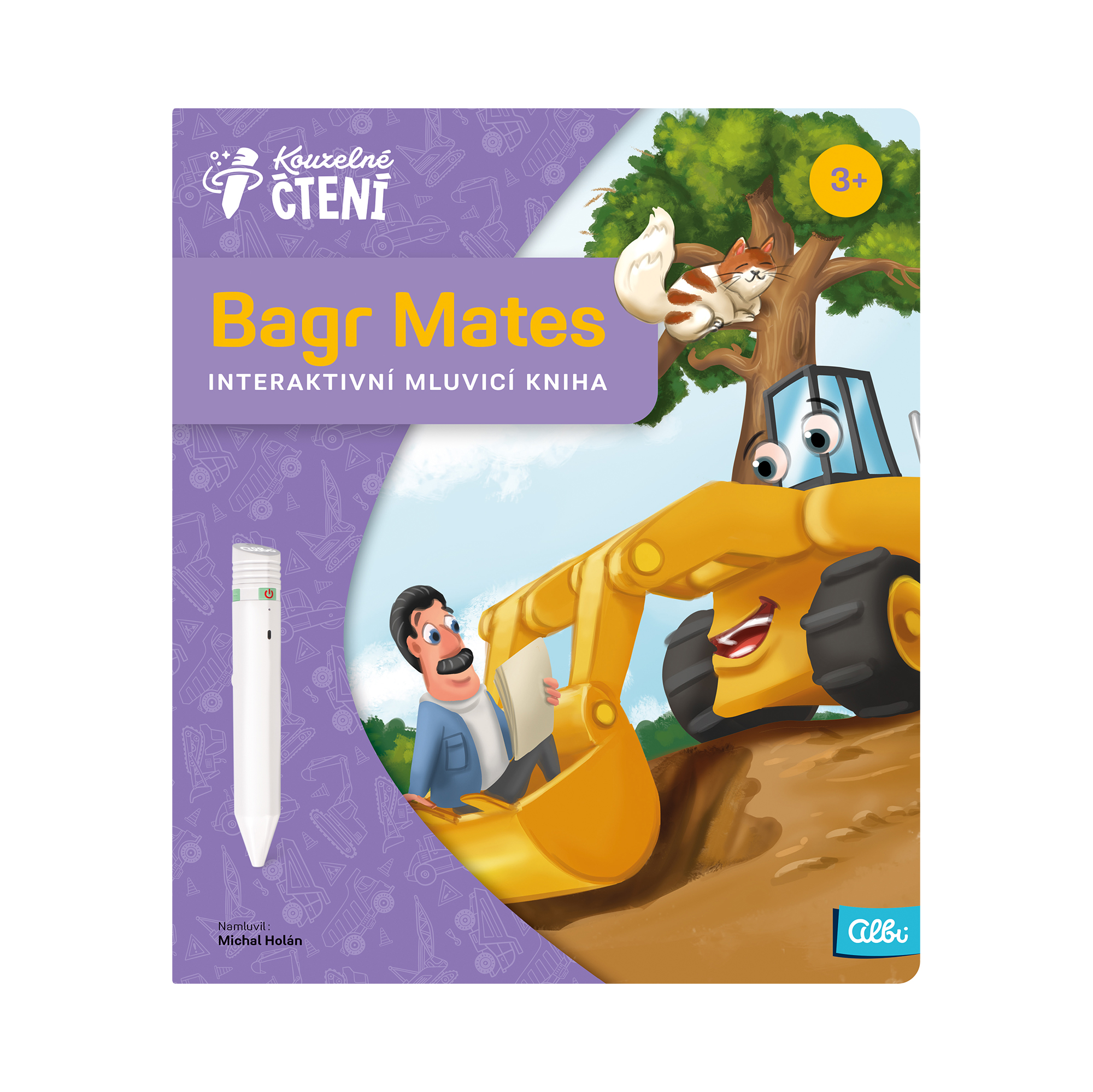 Interaktivní mluvicí dětská kniha Bagr Mates z edice Kouzelné čtení seznámí děti od 3 let s dobrodružstvím roztomilého bagru na stavbě. Myslíte si, že se na stavbě nemůže stát nic, co by stálo za řeč? Tak to jste ještě neslyšeli o stavbě, kde je stavbyvedoucím pan Makovička. Právě přijel nový bagr, kterého náklaďák Rudolf pojmenoval Mates. Už cestou na stavbu se Mates osvědčil při odklízení stromu, a to ještě netušil, jakým se stane hrdinou. Matesovi se totiž podaří vykopat poklad nebo odhalit strašidlo, kterého se bojí jeho kamarádi. A nejen to! Pojďte zjistit, co všechno bagr Mates na stavbě zažil. Kniha Bagr Mates obsahuje přes 500 zvukových stop. ZVUKOVÉ UKÁZKY Poslechněte si několik ukázek z knihy Bagr Mates – Kouzelné čtení. Namluvili: Michal Holán Text: Lucie Krystlíková Ilutrace: Marcel Králík ISBN 978-80-7688-035-1 Vzniklo ve spolupráci se studiem C-Flat.