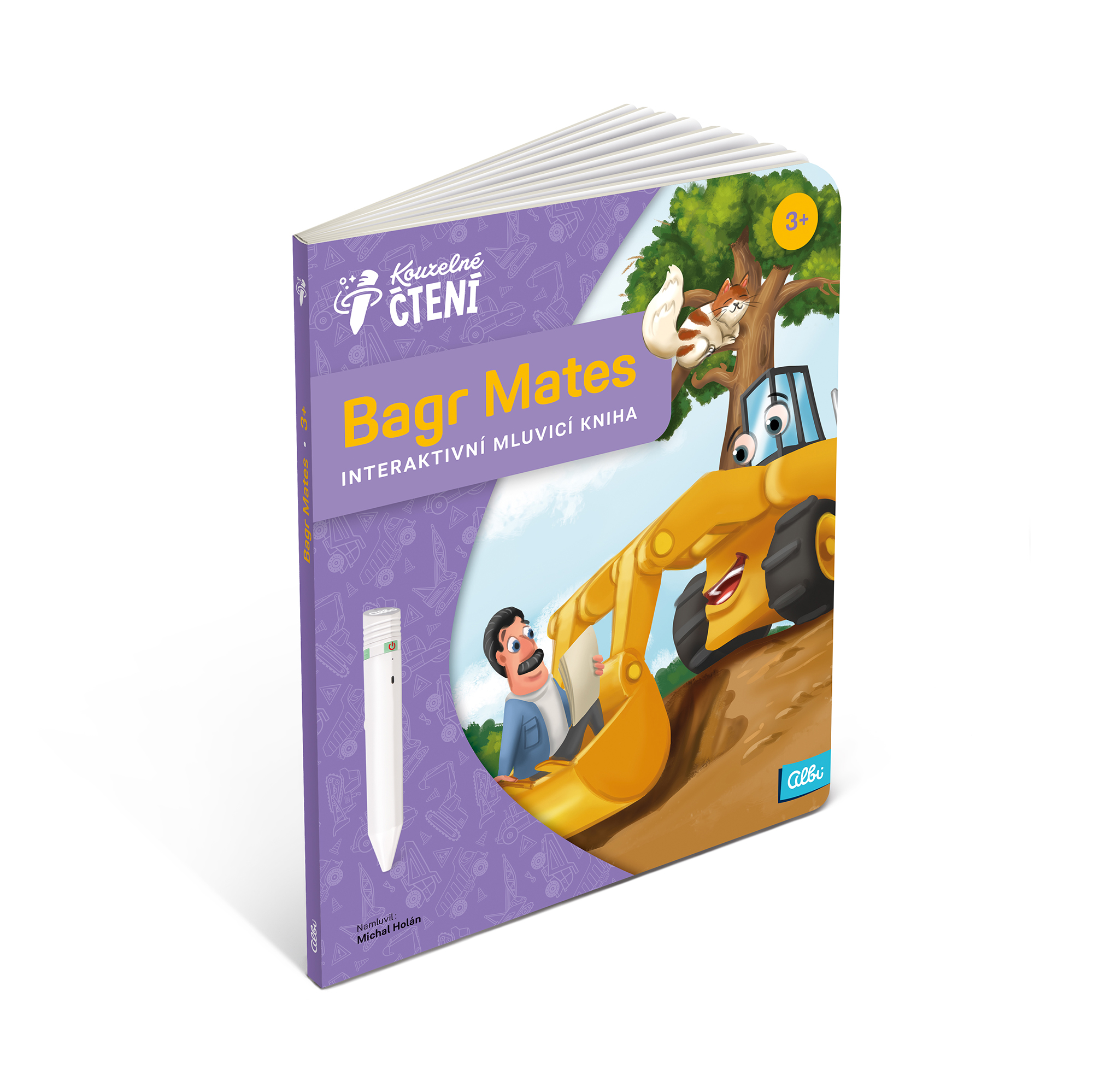 Interaktivní mluvicí dětská kniha Bagr Mates z edice Kouzelné čtení seznámí děti od 3 let s dobrodružstvím roztomilého bagru na stavbě. Myslíte si, že se na stavbě nemůže stát nic, co by stálo za řeč? Tak to jste ještě neslyšeli o stavbě, kde je stavbyvedoucím pan Makovička. Právě přijel nový bagr, kterého náklaďák Rudolf pojmenoval Mates. Už cestou na stavbu se Mates osvědčil při odklízení stromu, a to ještě netušil, jakým se stane hrdinou. Matesovi se totiž podaří vykopat poklad nebo odhalit strašidlo, kterého se bojí jeho kamarádi. A nejen to! Pojďte zjistit, co všechno bagr Mates na stavbě zažil. Kniha Bagr Mates obsahuje přes 500 zvukových stop. ZVUKOVÉ UKÁZKY Poslechněte si několik ukázek z knihy Bagr Mates – Kouzelné čtení.         Namluvili: Michal Holán Text: Lucie Krystlíková Ilutrace: Marcel Králík ISBN 978-80-7688-035-1 Vzniklo ve spolupráci se studiem C-Flat.