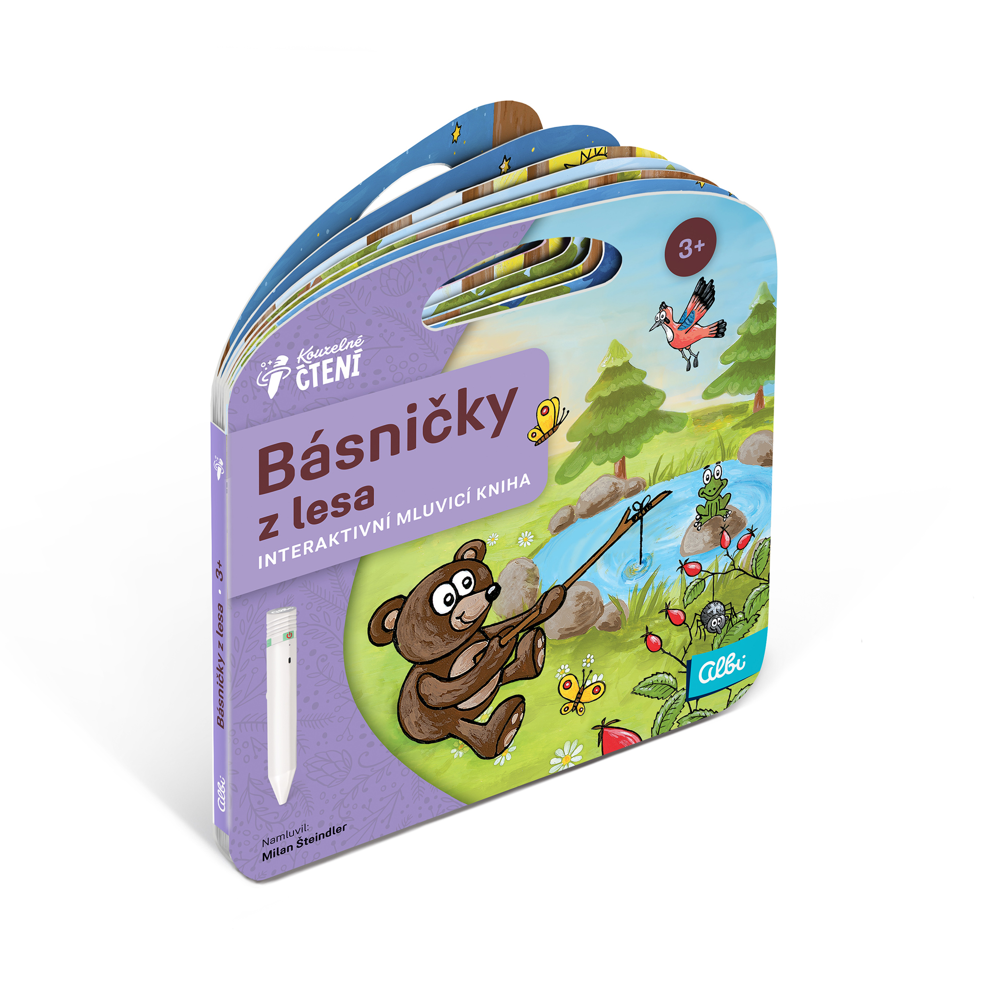 Dětská mluvící kniha Básničky z lesa z edice Kouzelné čtení zabaví děti již od 3 let. S Elektronickou Albi tužkou si vyslechnou celkem 12 navazujících básniček o zvířátkách z lesa, monology zvířátek i jejich příběh.  V knize nechybí zábavný kvíz, ve kterém budou děti hledat jednotlivá zvířátka, rostliny a další.  Kniha Básničky z lesa obsahuje přes 500 zvuků a textů. ZVUKOVÉ UKÁZKY Poslechněte si několik ukázek z knihy Básničky z lesa – Kouzelné čtení.         Namluvil: Milan Šteindler Básnička a texty: Lucie Krystlíková Ilustrace: Daniela Skalová Vzniklo ve spolupráci se studiem SOUND Lab.
