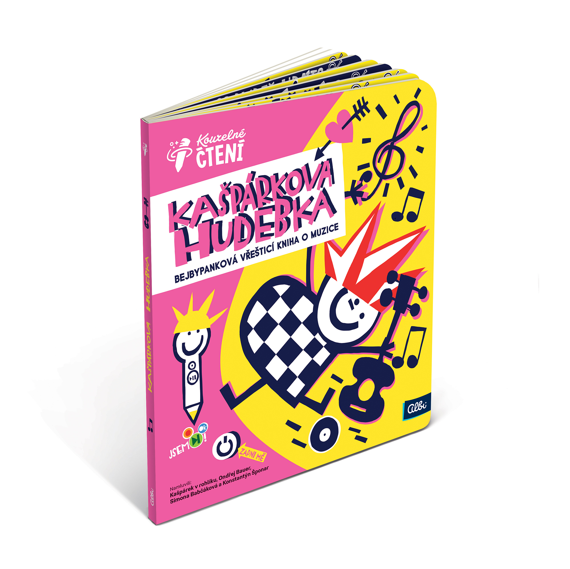 Co je ušní červ? Jak to, že nota celá nemá nohu? Proč Kašpárek v rohlíku hraje na theremin? A víš, že děláš vlny? Na 16 stranách bejbypankové vřeštící učebnice Kašpárkova hudebka z edice Kouzelné čtení se dozvíš mnoho z historie i teorie hudby, ale také rozezníš prdlafon, poslechneš si muzikantské vzkazy od slavných kámošů Kašpárka a ve velkém kvízu zjistíš, na jaký nástroj se máš naučit. Ať už hraješ na kytaru, nebo jen na máminy nervy, můžeš si založit kapelu! A hlavně se už vždycky radovat z hudby. Protože je zkrátka boží. Kniha obsahuje přes 3333 zvukových stop. ZVUKOVÉ UKÁZKY Poslechněte si několik ukázek z knihy Kašpárkova hudebka – Kouzelné čtení. Namluvili: Kašpárek v rohlíku, Ondřej Bauer, Simona Babčáková a Konstantýn Šponar Text: Pavel Kružík a Hana Kružíková Ilustrace: Lukáš Urbánek Hudba: Kašpárek v rohlíku Koncept: Pavel Kružík a Hana Kružíková Fotografie: Marek Novotný ISBN 978-80-88403-31-9