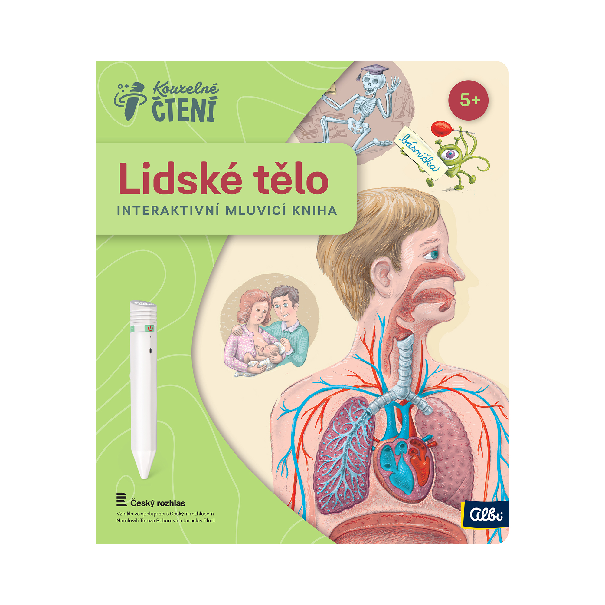 Interaktivní mluvící kniha z edice Kouzelné čtení, se kterou se děti již od 5 let dozvědí spoustu zajímavých a užitečných informací o našem těle. Knihou Lidské tělo provází malý ufon Prokouk, který přiletěl z planety Po, aby prozkoumal taje lidského těla. Všemu se diví a není divu: na planetě Po funguje všechno úplně jinak! Postava Prokouka a poutavé ilustrace podněcují děti k postupnému objevování jednotlivých částí a soustav lidského těla.  Kniha je členěna do 8 kapitol a témata jsou např. Kosti a svaly, Mozek a nervy, Rozmnožování, Trávicí soustava, Srdce a plíce atd. Na každé dvoustraně najdou malí i velcí průzkumníci návod na cvik. Když si všechny cviky propojí, vznikne sestava, kterou si mohou zacvičit a krásně se přitom protáhnout. V knize Lidské tělo najdete také básničky, zábavné kvízy a speciální ikony, které děti vybízí, aby si získanou informaci zkusili doslava na vlastní kůži. Kniha obsahuje téměř 2000 zvuků a textů. ZVUKOVÉ UKÁZKY Poslechněte si několik ukázek z knihy Lidské tělo – Kouzelné čtení.         Namluvili: Tereza Bebarová a Jaroslav Plesl Text: Lucie Ujcová Text básniček: Robin Král Ilustrace: Pavel Pecina Vzniklo ve spolupráci s Českým rozhlasem