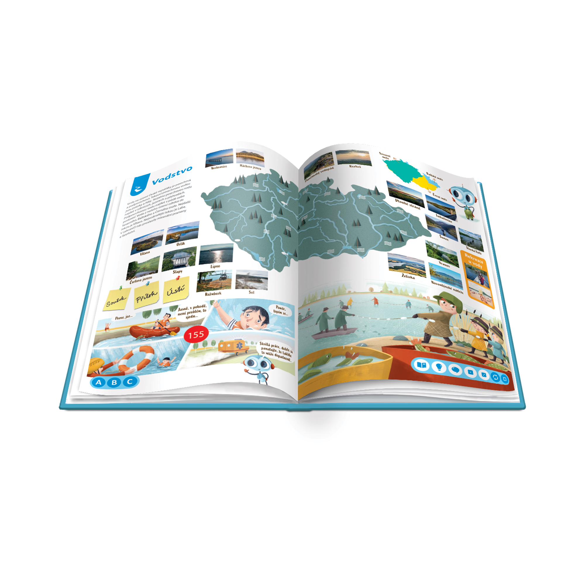 Mluvicí kniha Vlastivěda – zeměpisná část z edice Kouzelné čtení shrnuje dětem od 8 let to nejdůležitější z učiva vlastivědy pro 4. a 5. ročník se zaměřením na zeměpisné poznatky o naší vlasti. Tato moderní učebnice je učená všem chytrým školákům, kteří se chtějí zábavnou formou seznámit s předmětem vlastivěda. Obsahuje 16 kapitol, které jsou zaměřeny na ty nejdůležitější poznatky o naší vlasti. Kromě klasických témat jako je povrch, vodstvo či příroda, se publikace věnuje i jednotlivým krajům, postavení Česka v Evropě a různým vlastivědným zajímavostem. Prostřednictvím ilustrací, fotografií či komiksů děti rychleji proniknou do učební látky. Na závěr si učivo mohou zopakovat pomocí hry. Důraz je kladen na praktické využití získaných znalostí. Kniha je vhodným doplňkem pro domácí vzdělávání nebo zopakování školního učiva. Oproti ostatním knihám z edice Kouzelné čtení má Vlastivěda 37 tenkých stránek, takže je schopná pojmout více informací než klasické kouzelné knihy se silnými stránkami. Kniha má pevné desky. Obsahuje téměř 4 000 zvukových stop. ISBN 978-80-88403-81-4   ZVUKOVÉ UKÁZKY Poslechněte si několik ukázek z knihy Vlastivěda – zeměpisná část – Kouzelné čtení.           Ilustrace: Jakub Cenkl Text: Mgr. Radek Machatý Odborná korektura: Mgr. Michal Trávníček Namluvili: Vladimír Kořen, Bára Klárová, Markéta Šandová, Michal Stejskal a Lukáš Borik Vzniklo ve spolupráci se studiem SoundLab.   UPOZORNĚNÍ – NEFUNGUJE SAMOSTATNĚ BEZ ALBI TUŽKY! Interaktivní mluvící produkty (časopisy, knihy, hry, puzzle, samolepky atd.) z edice Kouzelné čtení nefungují samostatně – k plné funkčnosti je potřeba elektronická Albi tužka. Albi tužka není součástí produktu – je nutné ji zakoupit zvlášť v sekci Kouzelné čtení – Sady s tužkou.