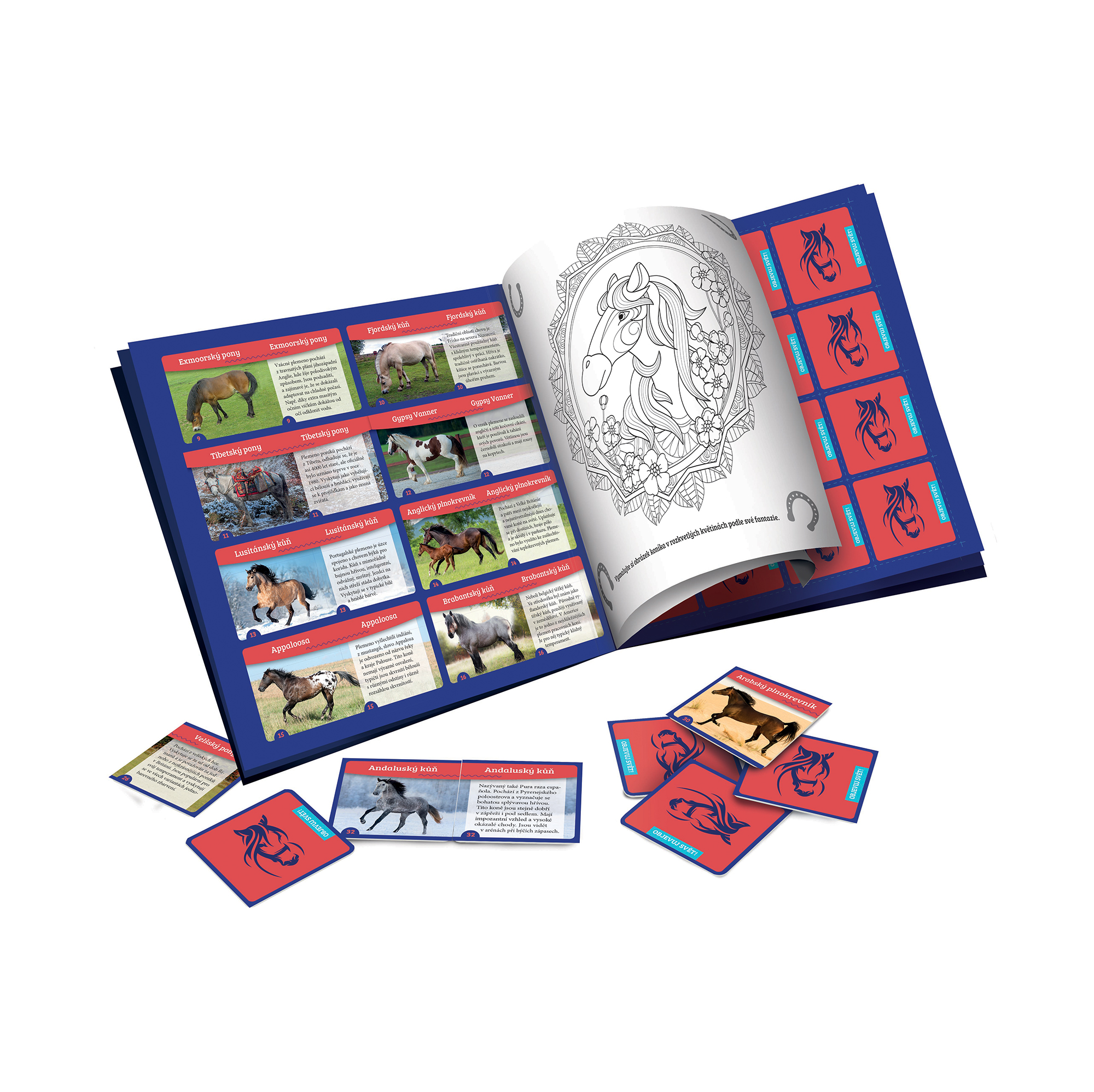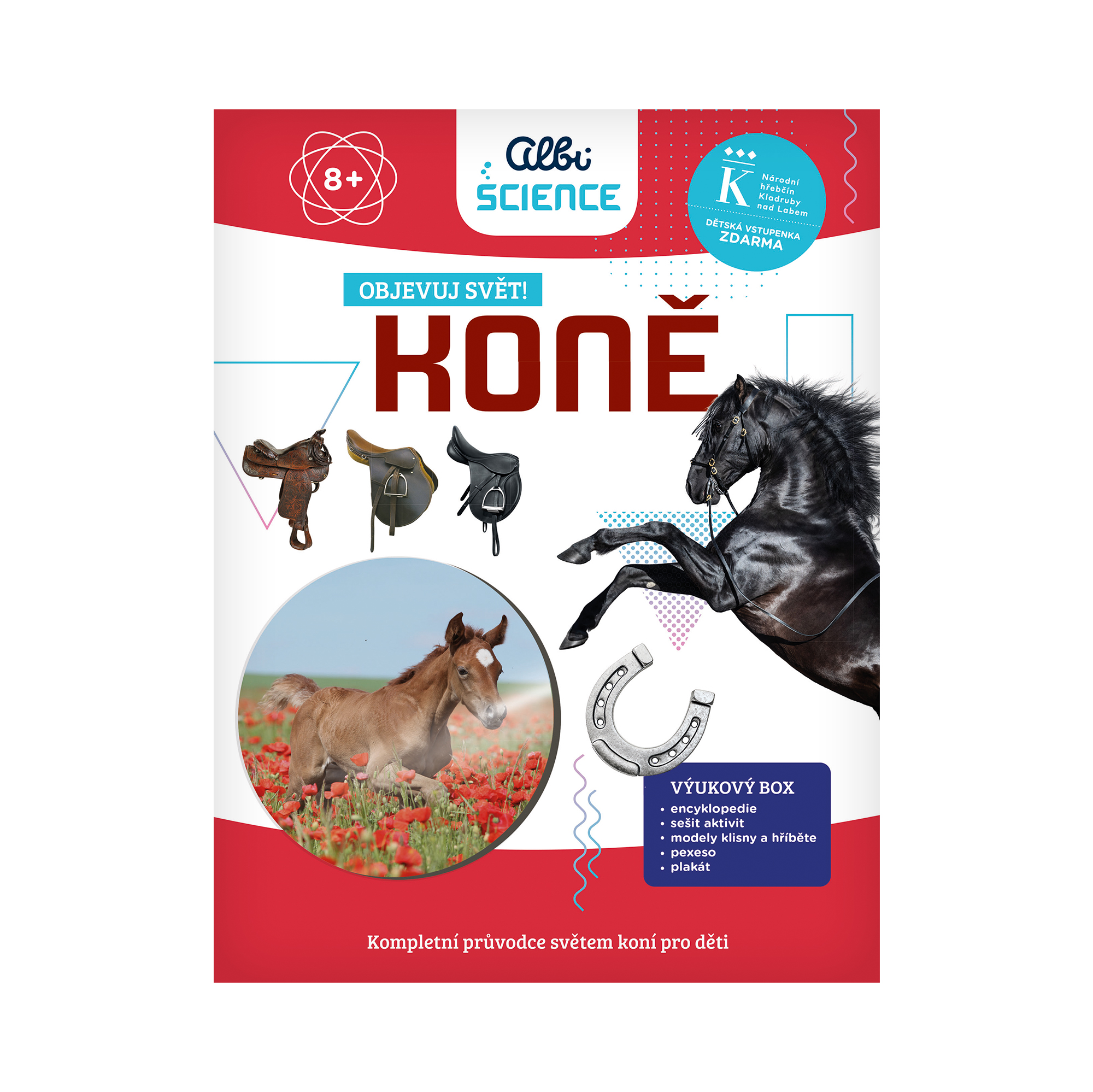 1. místo v soutěži Hračka roku 2023 V soutěži Hračka roku 2023 se vítězem kategorie Vzdělávací a kreativní stal zážitkový a vzdělávací box Objevuj svět! Koně. Více zde Zážitkový a vzdělávací encyklopedický box obsahuje kromě zajímavých informací také knihy s pexesem a modely koní. Nádherná encyklopedie s fotografiemi a zajímavostmi o životě koní, jako jsou narození, vývoj, jídelníček, péče, ustájení, trénink, závody, historie a plemena, zabaví děti od 8 let. V balení najdete také sešit aktivit zaměřený na praktické chovatelské rady s hádankami a samolepkami, plakát s propracovanou anatomií koně, pexeso s plemeny koní a modely klisny a hříběte s ohradou. Součástí balení je i dětská vstupenka do Národního hřebčína Kladruby nad Labem zdarma. Rozměry balení: 24 cm × 31 cm × 7 cm