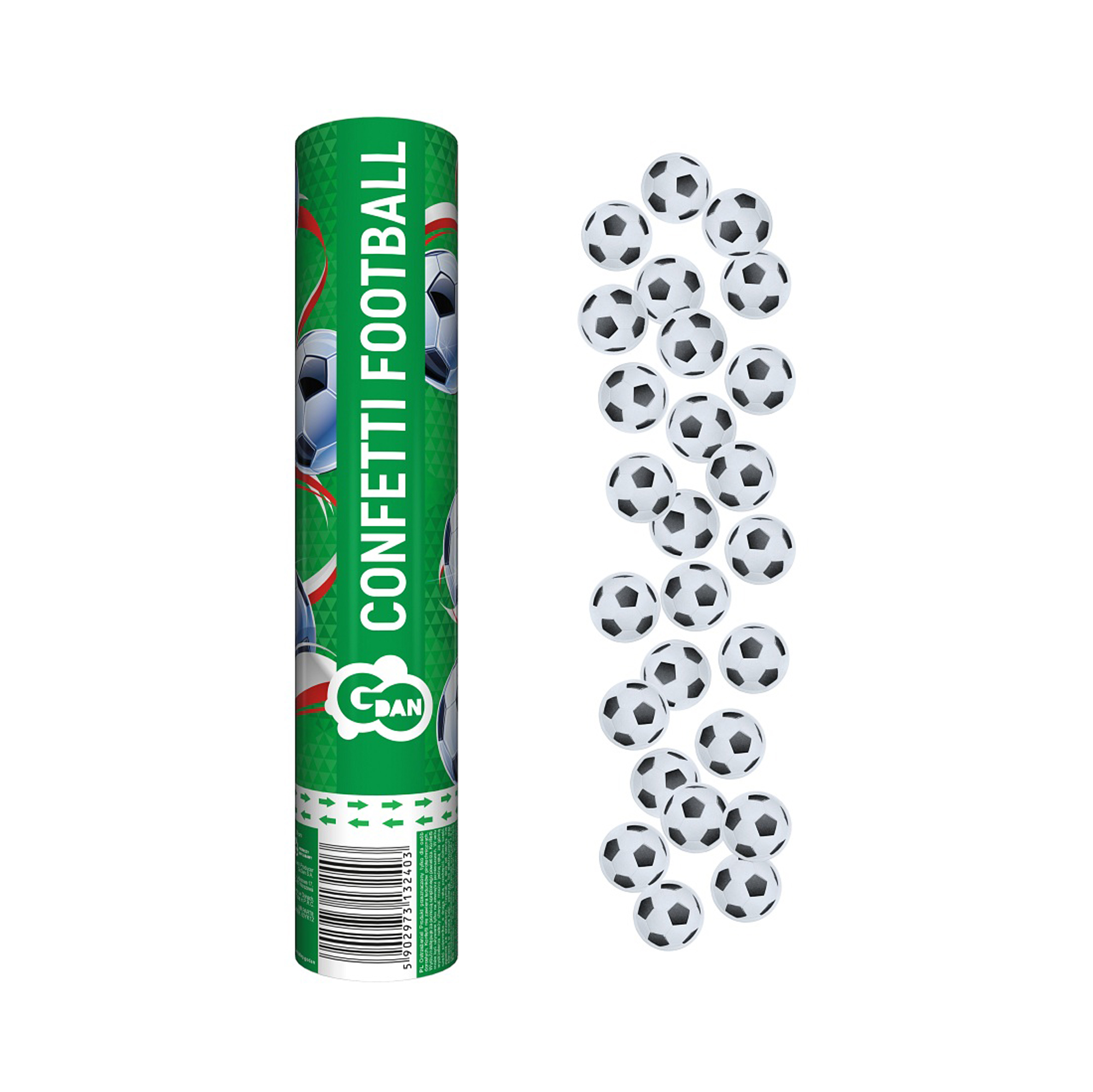Konfety vystřelovací jsou skvělým pomocníkem jako dekorace na narozeninové oslavy a tématické párty. Tyto vystřelovací konfety mají kulatý tvar a motiv fotbalových míčů – budou se dobře kombinovat s dalšími párty produkty ve stejném motivu. Pro inspiraci můžete prozkoumat naši sekci Párty pro děti – Fotbal. Postup: Tubus uchopte v dolní části oběma rukama a namiřte šikmo do výšky. Oběma rukama najednou pootočíte tubus ve směru znázorněných šipek (levá ruka směřuje doprava, pravá doleva). Dojde k protržení vrchního obalu, konfety vystřelí a budou se pozvolna snášet k zemi. Upozornění: Nesměřujte na obličeje ani na osoby z bezprostřední blízkosti. Balení obsahuje: 1 ks vystřelovacích konfet o velikosti 30 cm