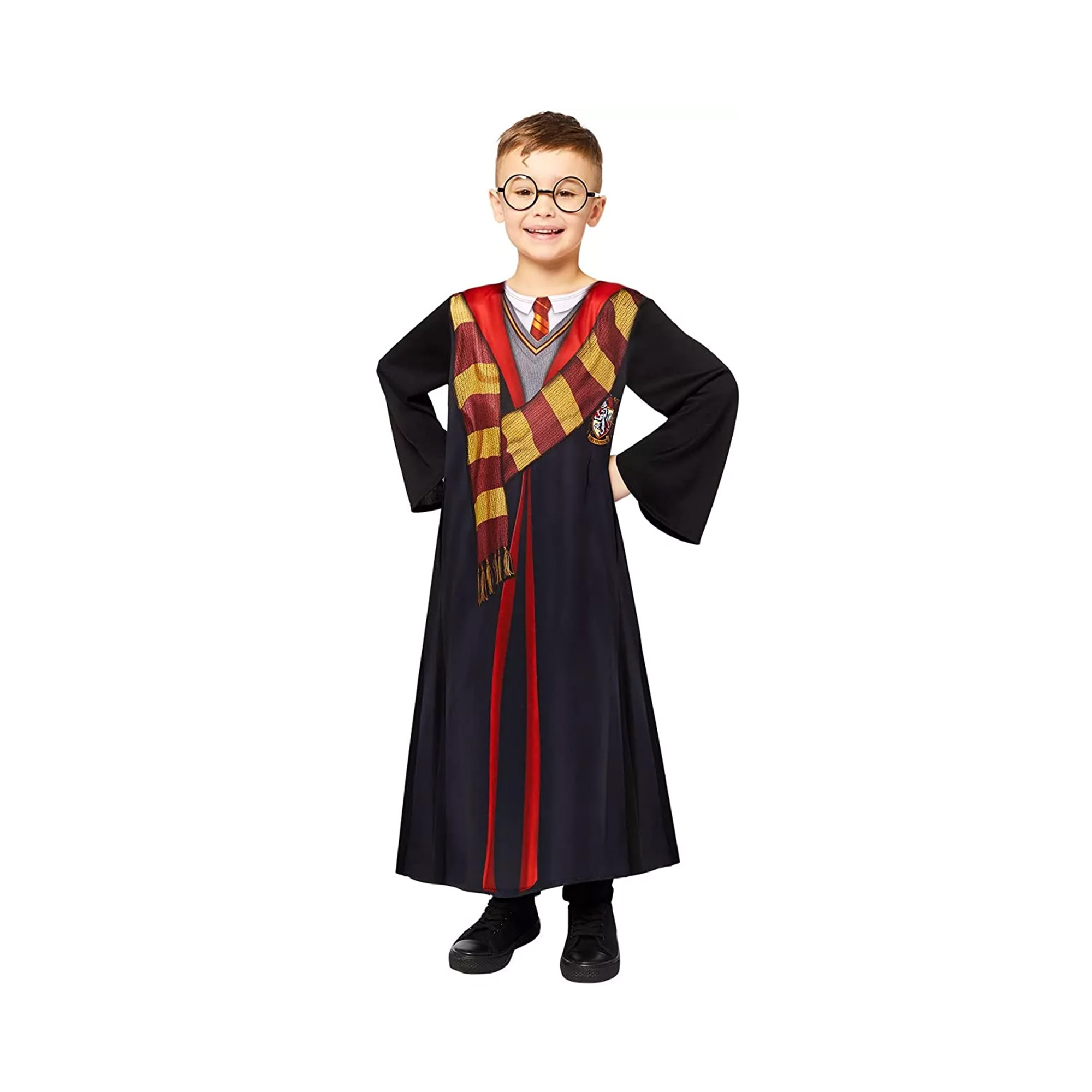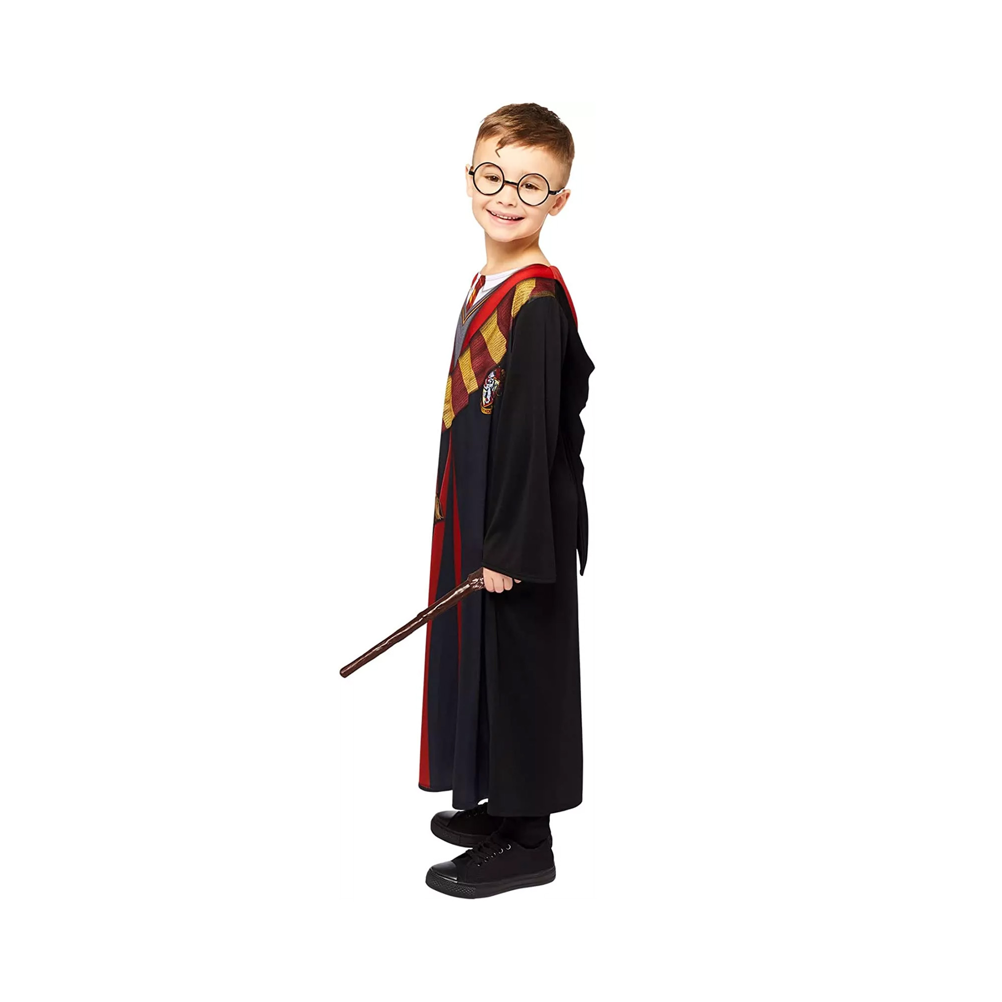Dětský kostým čaroděje Harry Pottera na tematické párty, karnevaly či narozeninové oslavy. Tento oblíbený párty kostým kombinujte s dalšími dekoracemi v sekci párty doplňky. Velikost kostýmu: 104 – 116 (4-6 let) Balení obsahuje: plášť s potiskem loga a kapucí,plastovou hůlku a plastové brýle