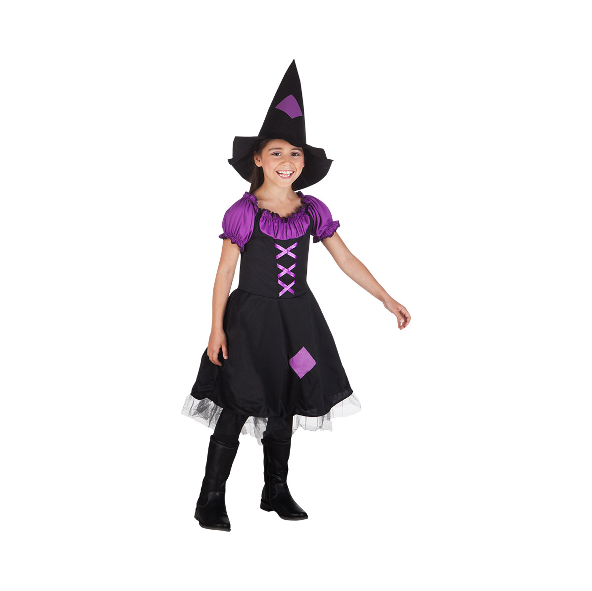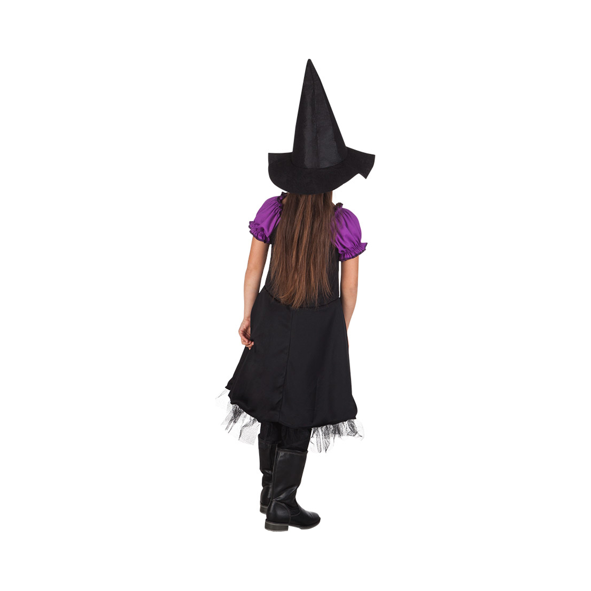 Dětský kostým Majestátní čarodějka na tematické párty, karnevaly či Halloween. Tento oblíbený párty kostým kombinujte s dalšími dekoracemi v sekci kostýmové doplňky. Velikost kostýmu: 4-6 let Balení obsahuje šaty a čarodějnický klobouk.