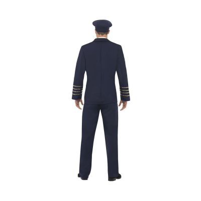 Pánský kostým pilota zahrnuje sako, kalhoty a čepici. Uniforma je laděna do tmavě modré barvy se zlatými detaily. Tento elegantní kostým využijete na tematickou leteckou párty nebo karneval. Velikost: L Balení obsahuje: sako, kalhoty a čepice