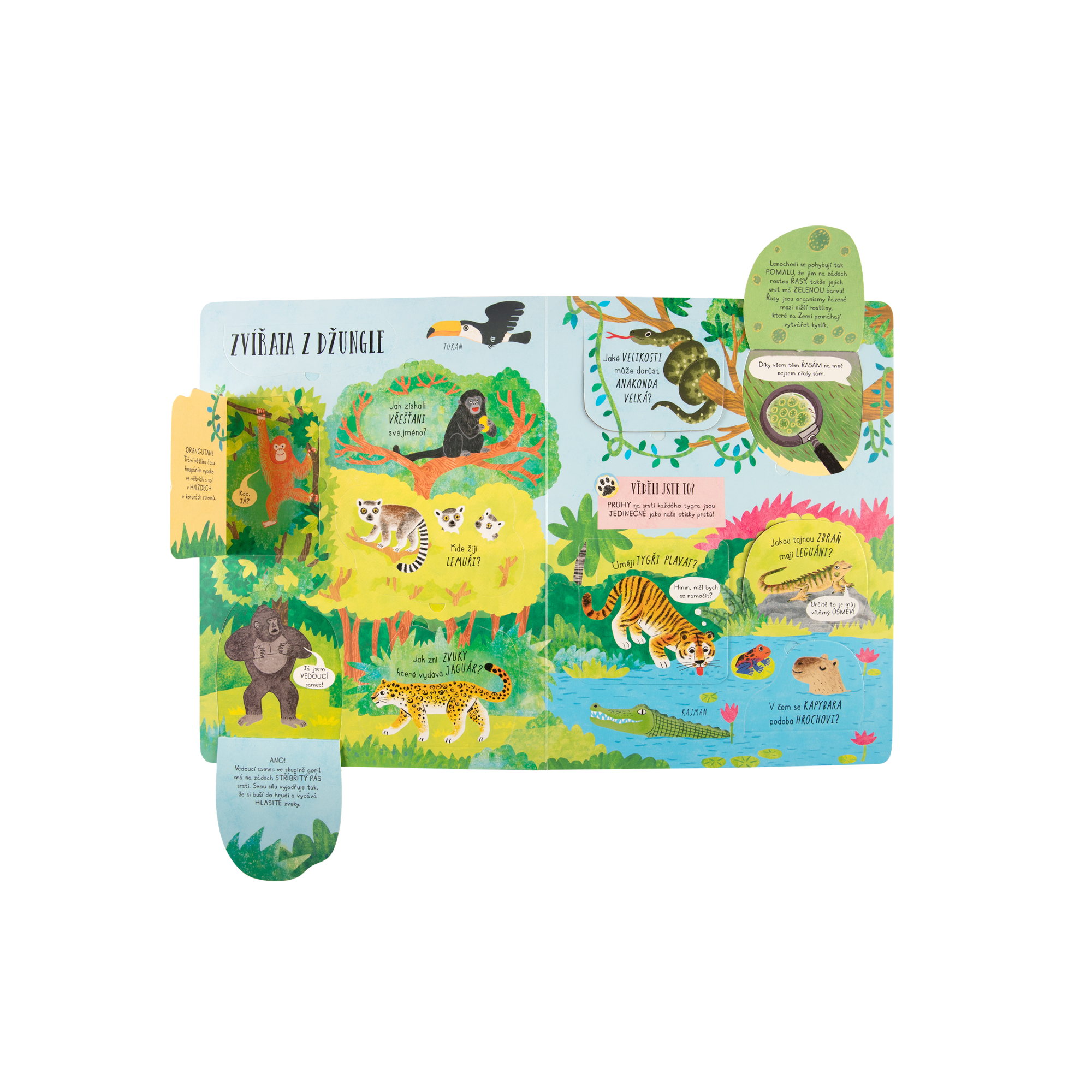 Přemýšleli jste už někdy, které zvíře by bylo nejlepším kamarádem? Proč jsou plameňáci růžoví a lamy plivou? Nebo co dokáže rozlítit hrocha? Dětská kniha na principu otázek a odpovědí bez problému zabaví každé dítě od 6 let. Odklopte více než 60 okének a dozvíte se nejen odpovědi na tyto otázky, ale i spoustu dalších zajímavostí o zvířatech. Od tvorů z džungle, přes živočichy z oceánu, polární oblasti, zvířat ze savany, lesa a také těch z pouště. Tato krásně ilustrovaná kniha skrývá praktickou kapsu s velkým plakátem zvířat. Děti si ho mohou vyvěsit ve svém pokojíčku a učit se každý den. Počet stran: 11 Rozměry knihy: 22,7 × 29,5 cm Rozměry plakátu: 78 × 49 cm autor: Rachel Moss Ilustrace: Hui Skipp ISBN: 978-80-7688-301-7