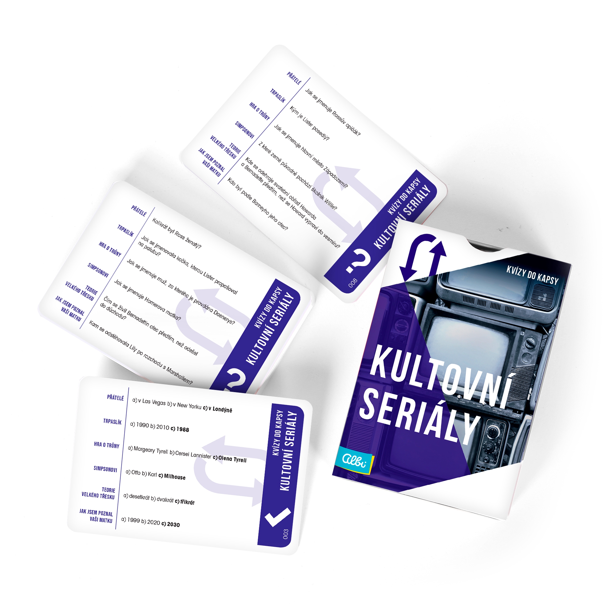 Karetní kvízy do kapsy jsou ideální zábavou na cesty, případně skvělým rozšířením pro kvízové hry typu Česko – Otázky a odpovědi. V každé krabičce naleznete 300 otázek rozdělených do 6 tematických okruhů. Pokud máte obavy, že nebudete vědět správné odpovědi, nezoufejte. Odpovědi můžete v Kvízech do kapsy tipovat ze třech nabízených možností. Hra Kvízy do kapsy obsahuje: 50 karet, pravidla.