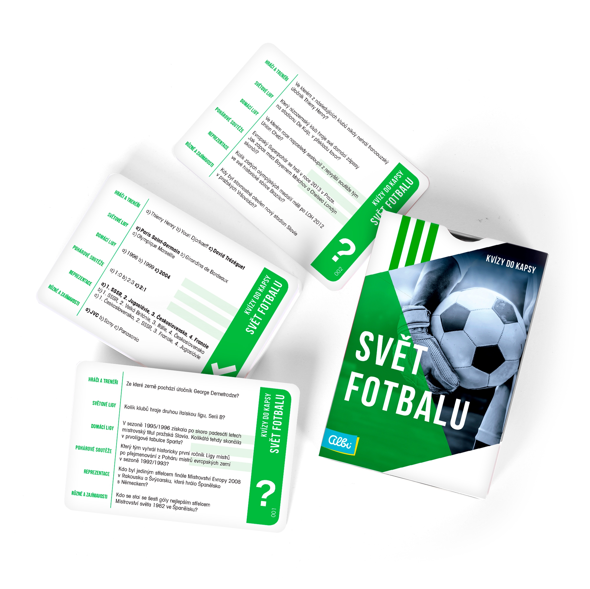 Karetní kvízy do kapsy jsou ideální zábavou na cesty, případně skvělým rozšířením pro kvízové hry typu Česko – Otázky a odpovědi. V každé krabičce naleznete 300 otázek rozdělených do 6 tematických okruhů. Pokud máte obavy, že nebudete vědět správné odpovědi, nezoufejte. Odpovědi můžete v Kvízech do kapsy tipovat ze třech nabízených možností. Hra Kvízy do kapsy obsahuje: 50 karet, pravidla.