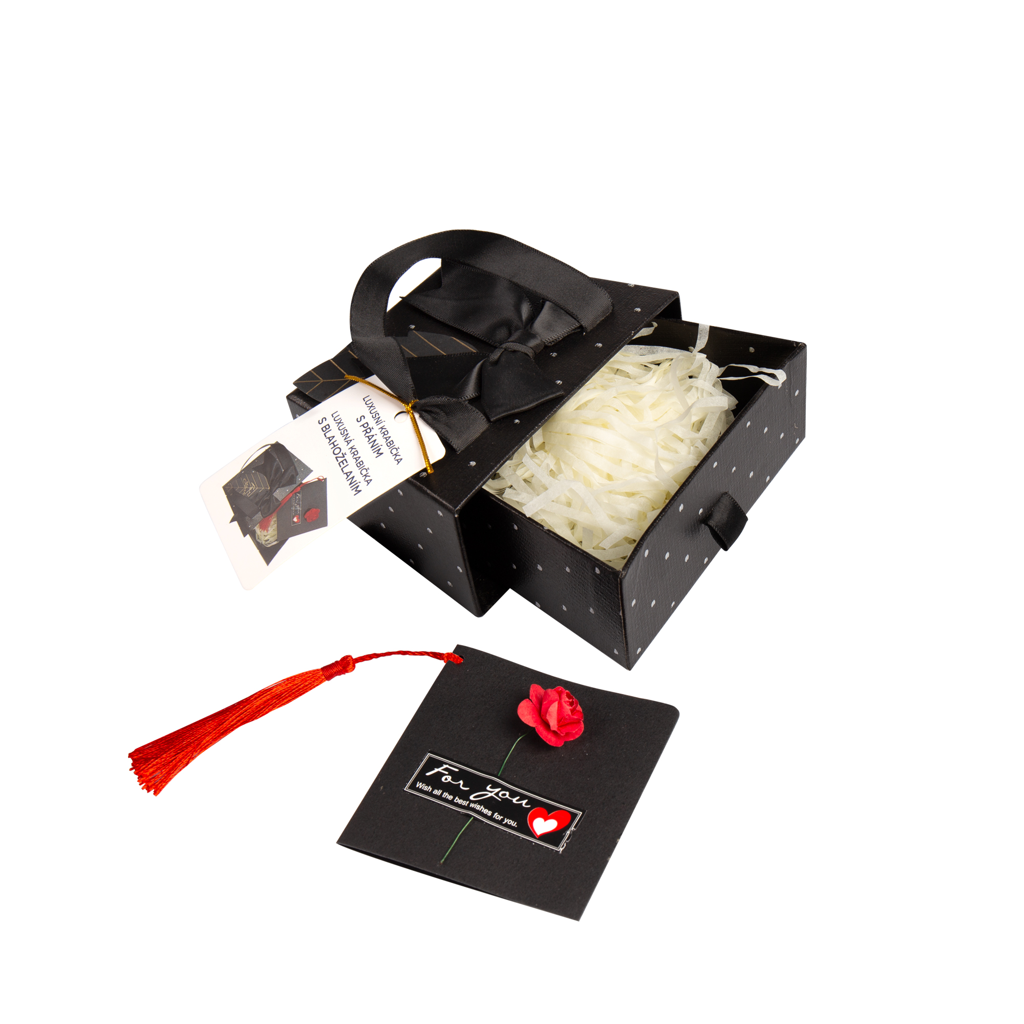 Máte koupený dárek a chcete obdarovanou osobu ohromit i jeho luxusním balením? Jednoduché a přitom efektivní řešení nabízí luxusní dárkové krabičky od Albi. Stačí předmět uložit do "šuplíčku" s papírovou výstelkou, napsat vzkaz do přiloženého přáníčka a můžete rovnou blahopřát. Všechny luxusní dárkové krabice mají navíc krásnou ozdobnou mašli a dlouhé úchytky ze stuhy, takže je lze předat jako dárkovou tašku. Krabice jsou dostupné ve třech velikostech a skvěle se hodí pro různé příležitosti, jako jsou narozeniny, svátek nebo Vánoce. Rozměry malé krabice: 13 × 9 × 5 cm (šířka × hloubka × výška) Rozměry střední krabice: 18 × 13 × 6,5 cm (šířka × hloubka × výška) Rozměry velké krabice: 24,5 × 20,5 × 10 cm (šířka × hloubka × výška) Krabičky dodáváme složené.