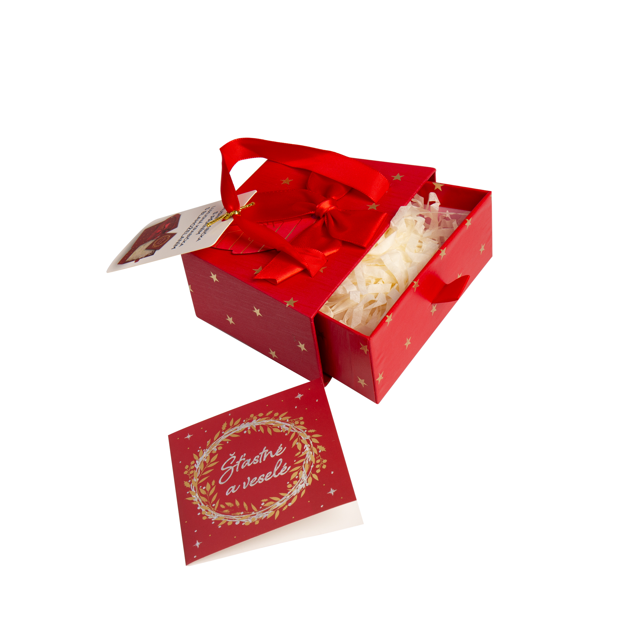 Máte koupený vánoční dárek a chcete milovanou osobu ohromit i jeho luxusním balením? Jednoduché a přitom efektivní řešení nabízí luxusní dárková krabička od Albi. Stačí předmět uložit do "šuplíčku" s papírovou výstelkou, napsat vzkaz do přiloženého přáníčka s motivem vánočního věnce a máte zabaleno. Svatební dárková krabice má navíc krásnou ozdobnou mašli a dlouhé úchytky ze stuhy, takže ji lze předat jako dárkovou tašku. Tato luxusní červená krabice se zlatou ražbou je dostupná ve třech velikostech. Rozměry malé krabice: 13 × 9 × 5 cm (šířka × hloubka × výška) Rozměry střední krabice: 18 × 13 × 6,5 cm (šířka × hloubka × výška) Rozměry velké krabice: 24,5 × 20,5 × 10 cm (šířka × hloubka × výška) Krabičku dodáváme složenou.