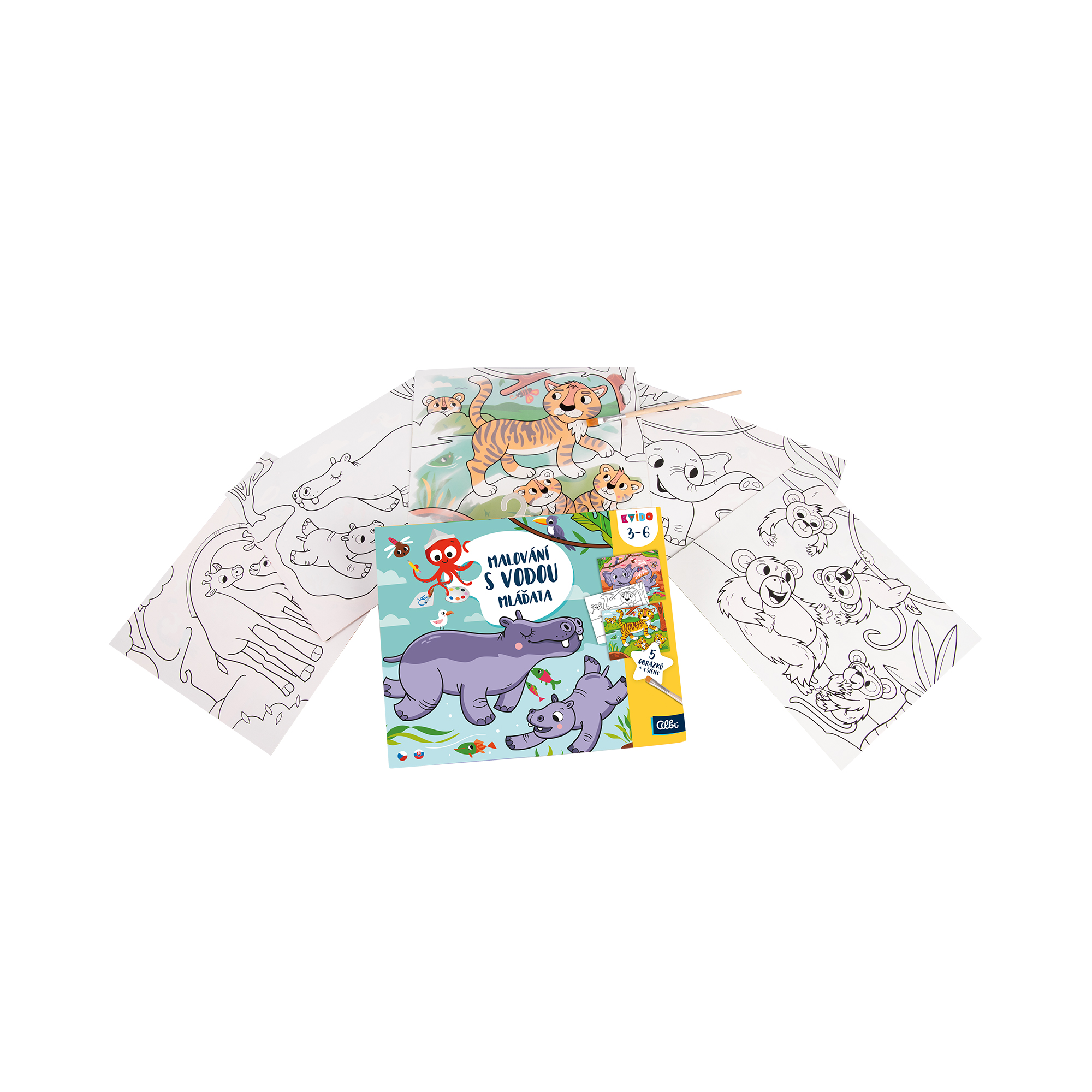 sada 5 nových obrázků s motivem roztomilých mláďátek, které jsou schované na papíře. Namočte štětec do vody a začněte „malovat“. Obrázky se jako zázrakem vybarví a objeví se na nich zajímavé detaily. Obrázky lze po zaschnutí vymalovat opakovaně. Protože děti nepoužívají skutečné barvy, ale malují pouze vodou, nehrozí žádné skvrny na oblečení ani nábytku, ideální pro malé kluky i holky od 3 do 6 let. Malování podporují rozvoj jemné motoriky a tvořivosti. Sada Malování s vodou: Mláďata – Kvído obsahuje: 5 obrázků, 1 štětec.