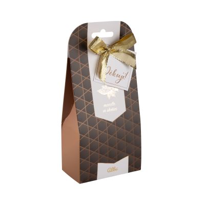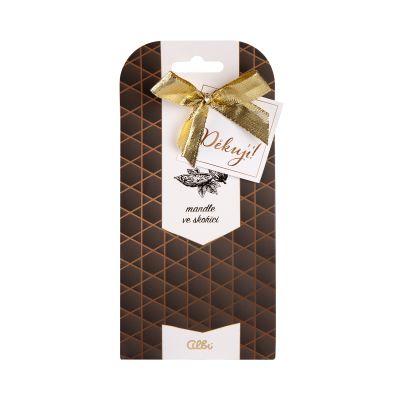 Udělejte radost svým blízkým lahodnými mandlemi v mléčné čokoládě obalené ve voňavé skořici. Tento sladký dárek v pěkném balení s věnováním je milou pozorností, kterou potěšíte každého. Hmotnost: 120 g Rozměry balení: 19,3 cm × 9 cm × 4, 8 cm Mandle ve skořici 120g Složení: Mléčná čokoláda 79% (cukr, kakaové máslo, sušené mléko, sušená syrovátka, kakaová hmota, emulgátor sójový lecitin, aroma (vanilín), mandle jádra pražená 20%, skořice mletá 1%. Alergeny: Výrobek obsahuje sóju, mléko a jiné ořechy. Výrobek může obsahovat arašídy a sezam. Výživové údaje na 100 g: energetická hodnota 2376 kJ/572 kcal tuky 38,1 g – z toho nasycené mastné kyseliny 16,5 g sacharidy 45,9 g – z toho cukry 42,4 g bílkoviny 9,3 g sůl 0,17 g Hmotnost: 120 g Skladujte v suchu, chraňte před teplem.