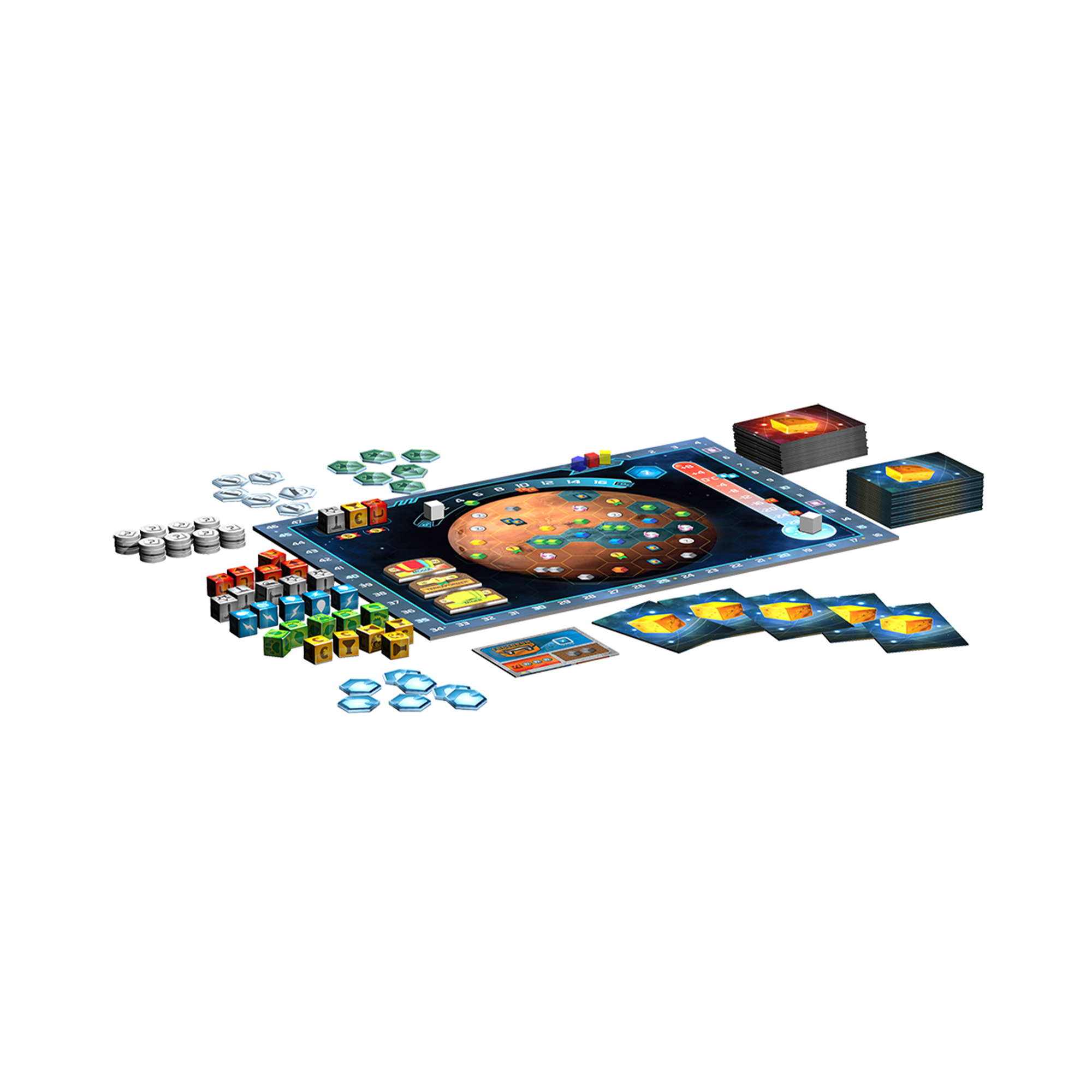 kolonie na Marsu jsou již založené, ale teď vás čeká mnohem náročnější úkol – proměnit nehostinnou planetu v nový domov lidstva. Chopte se vedení své korporace a dokažte, že právě vy dokážete planetu zúrodnit a vybudovat prosperující civilizaci. kostky představují zdroje, které hráči utrácejí za vykládání karet a provádění různých akcí. Během hry navyšujete produkci kostek, teraformujete, umisťujete města a zeleň na herní plán a získáváte různé bonusy. Tato hra vychází z principů světově úspěšné deskovky Mars: Teraformace a kombinuje 60 speciálních kostek se 159 unikátními kartami. Nabízí rychlý a svižný herní zážitek, který díky jednoduchým pravidlům potěší jak rodiny a příležitostné hráče, tak i zkušené strategické matadory. Hra Mars: Teraformace – kostková hra obsahuje: 1 herní plán, 60 kostek zdrojů, 159 různých karet, 6 desek hráčů, 6 desek tříd, 11 desek tratí, 11 destiček hvězd, 20 žetonů hráčů, 2 přehledové karty a pravidla hry.