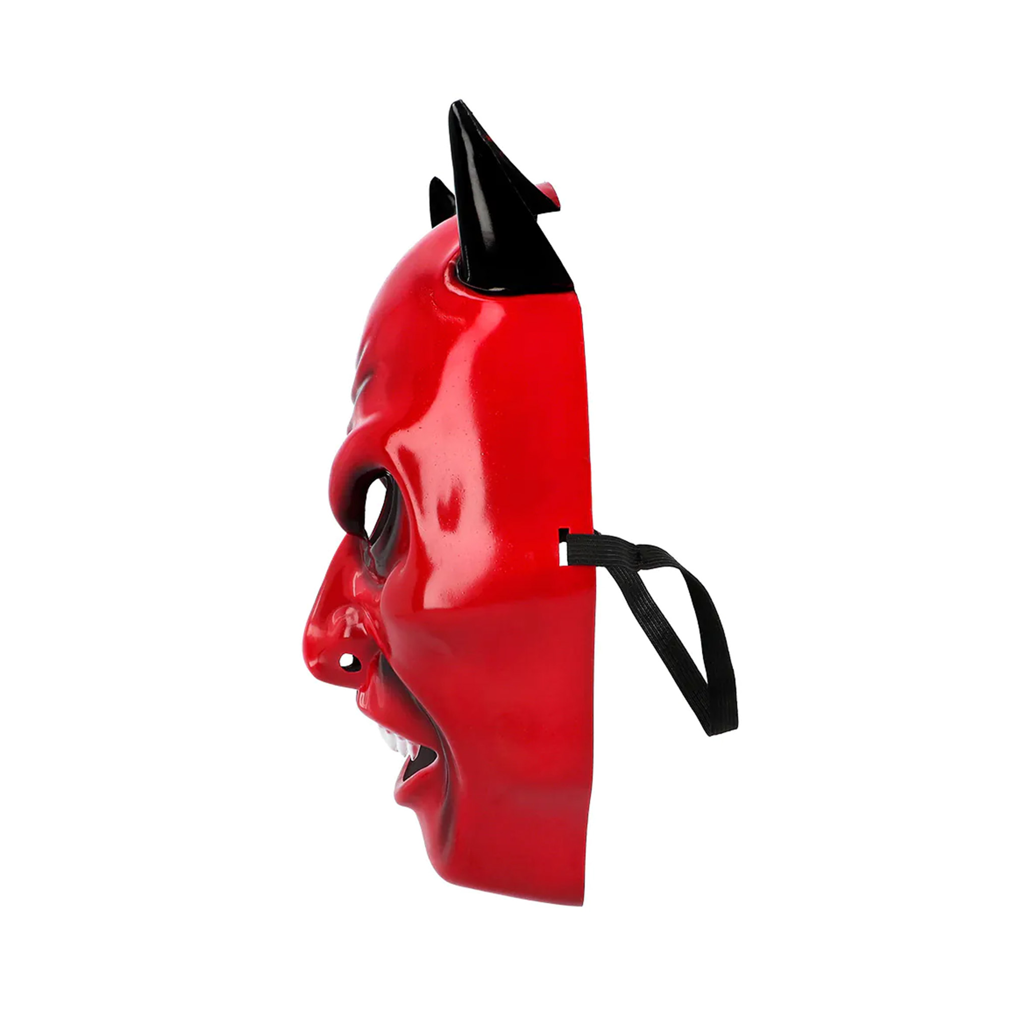 Ďábelská obličejová maska ​​s černými rohy, ostrými zuby a v ohnivě červené barvě je ideální jako děsivý doplněk kostýmu na Halloween. Tento doplněk využijete i ke kostýmu čerta při oslavě Mikuláše, který si jistě zaručí respekt u všech malých zlobidel. Velikost: univerzální (určeno pro dospělé) Balení obsahuje: 1 ks masky