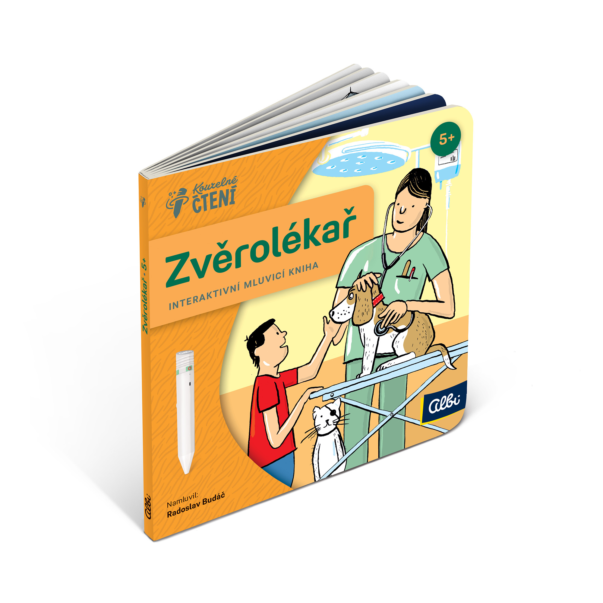 Interaktivní mluvící mini kniha Zvěrolékař seznámí děti od 5 let s povoláním zvěrolékaře. S Elektronickou Albi tužkou poznají nástroje, které ke své práci potřebuje, jaká zvířata léčí i jak se máme starat o domácí mazlíčky. V knize na ně čeká přes 500 zvuků a textů. Nechybí jednoduchý kvíz, který procvičí získané znalosti. ZVUKOVÉ UKÁZKY Poslechněte si několik ukázek z miniknihy povolání Zvěrolékař – Kouzelné čtení.         Namluvil: Radoslav Budáč