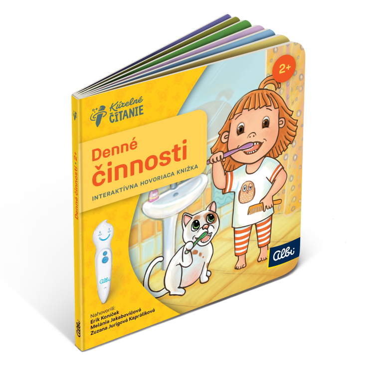 Interaktívna hovoriaca mini kniha prevedie deti od 2 rokov každodennými činnosťami. Deti strávia jeden deň so súrodencami Miškom a Zuzankou a ich nerozlučnými spoločníkmi, psíčkom Benom a mačičkou Mínou. Vstanú z postieľky, vyčistia si zúbky, dajú si niečo dobrého na obed a zahrajú sa. Všetky činnosti v knihe sprevádza pesnička. V knihe nechýbajú dialógy, básničky a samozrejme ani jednoduché zábavné kvízy. Knižku nahovorili Erik Koníček, Melánia Jakabovičová a Zuzana Jurigová Kapráliková. Ilustrácie: Iveta Autratová Text: Lucie Krystlíková Text básní: Diana Necpalová Piesne: Fero Király Rozmery knižky: 15 cm x 15 cm ISBN: 978-80-89773-36-7 AUDIO SÚBOR Audio súbor (aj podrobný postup ako pridať súbor do ceruzky) nájdete na www.kuzelnecitanie.sk.