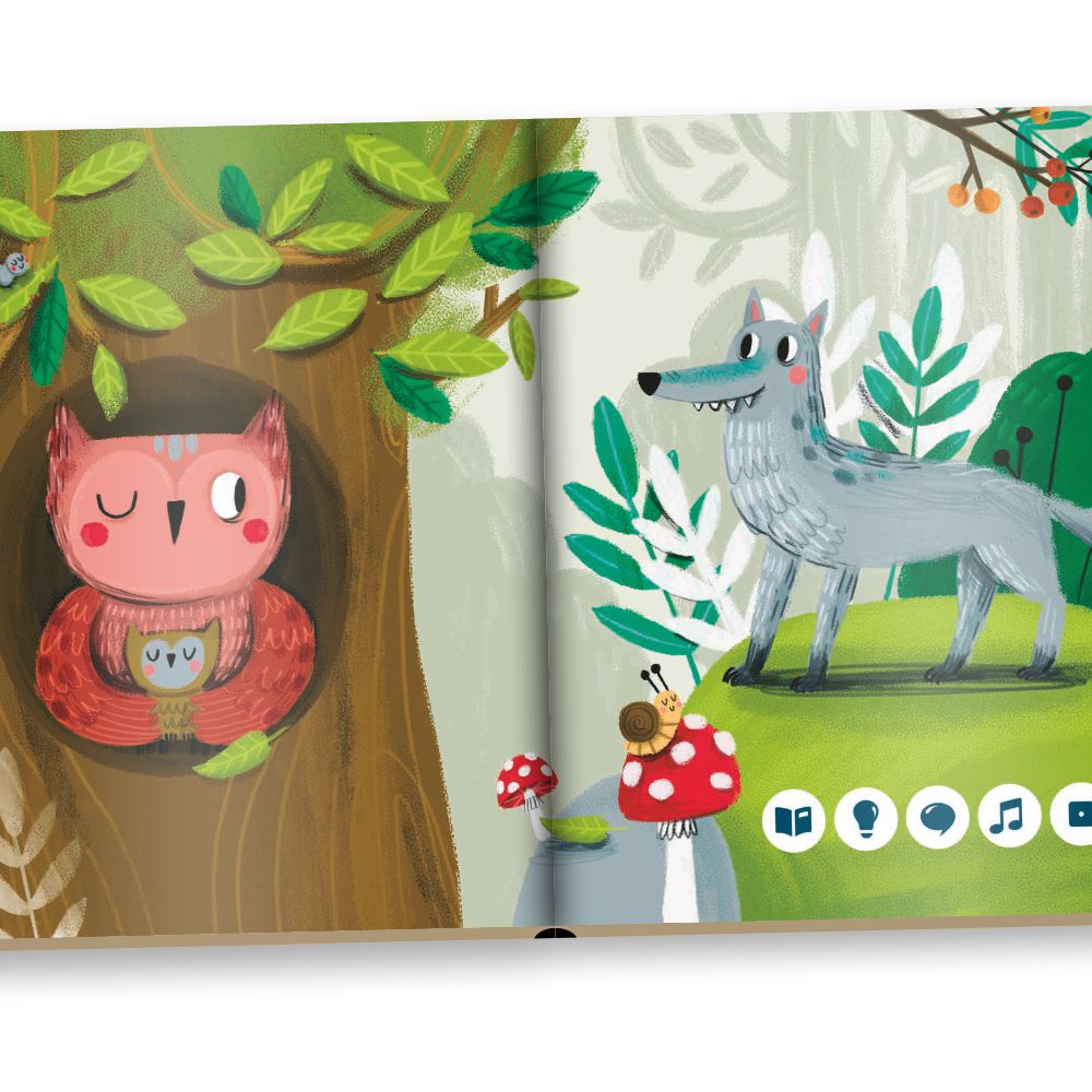 Spoznajte spolu s deťmi od 2 rokov lesné zvieratká ako je medveď, líška, jazvec a ďalšie s interaktívnou hovoriacou knihou Lesné zvieratká z edície Kúzelné čítanie. Les je plný zvieratiek, ktoré tu majú domov, ale aj veľa kamarátov. Nudiť sa určite nebudete. Zažite s nimi veľa zábavy a naučte sa napríklad krásne básničky! Poďte zistiť, kto práve oslavuje narodeniny, kto zobudil sovu alebo komu sa narodilo mláďatko. S knižkou spoznáte tieto zvieratká: veveričku, medveďa, sovu, vlka, diviaka, sojku, zajaca, líšku, jeleňa, ježka, kunu a jazveca. Knižku nahovorili Katarína Brychtová a Miroslav Noga. Ilustrácie: Edit Hajdu Sliacká Text: Lucie Krystlíková, Katarína Kočutová Rozmery knižky: 15 cm x 15 cm ISBN: ISBN 978-80-89773-41-1 AUDIO SÚBOR Audio súbor (aj podrobný postup ako pridať súbor do ceruzky) nájdete na www.kuzelnecitanie.sk.