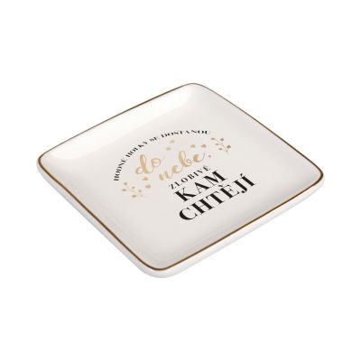 Mističky s milými texty a věnováními jsou ideální na drobné předměty, které potřebujete mít pohromadě. Mističky na drobnosti můžete využít třeba na klíče, mince, šperky, gumičky a sponky do vlasů či odličovací tamponky. Mističky lze využít i v kuchyni, např. na čajový sáček nebo koření. Díky vkusnému designu se zlatými okraji si mističku můžete také vystavit jako stylovou dekoraci. Nemyjte v myčce nádobí ani abrazivními prostředky. Rozměry: 8,5 cm × 8,5 cm Hloubka: 1,5 cm Materiál: keramika