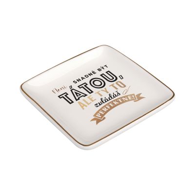 Mističky s milými texty a věnováními jsou ideální na drobné předměty, které potřebujete mít pohromadě. Mističky na drobnosti můžete využít třeba na klíče, mince, šperky, gumičky a sponky do vlasů či odličovací tamponky. Mističky lze využít i v kuchyni, např. na čajový sáček nebo koření. Díky vkusnému designu se zlatými okraji si mističku můžete také vystavit jako stylovou dekoraci. Nemyjte v myčce nádobí ani abrazivními prostředky. Rozměry: 8,5 cm × 8,5 cm Hloubka: 1,5 cm Materiál: keramika