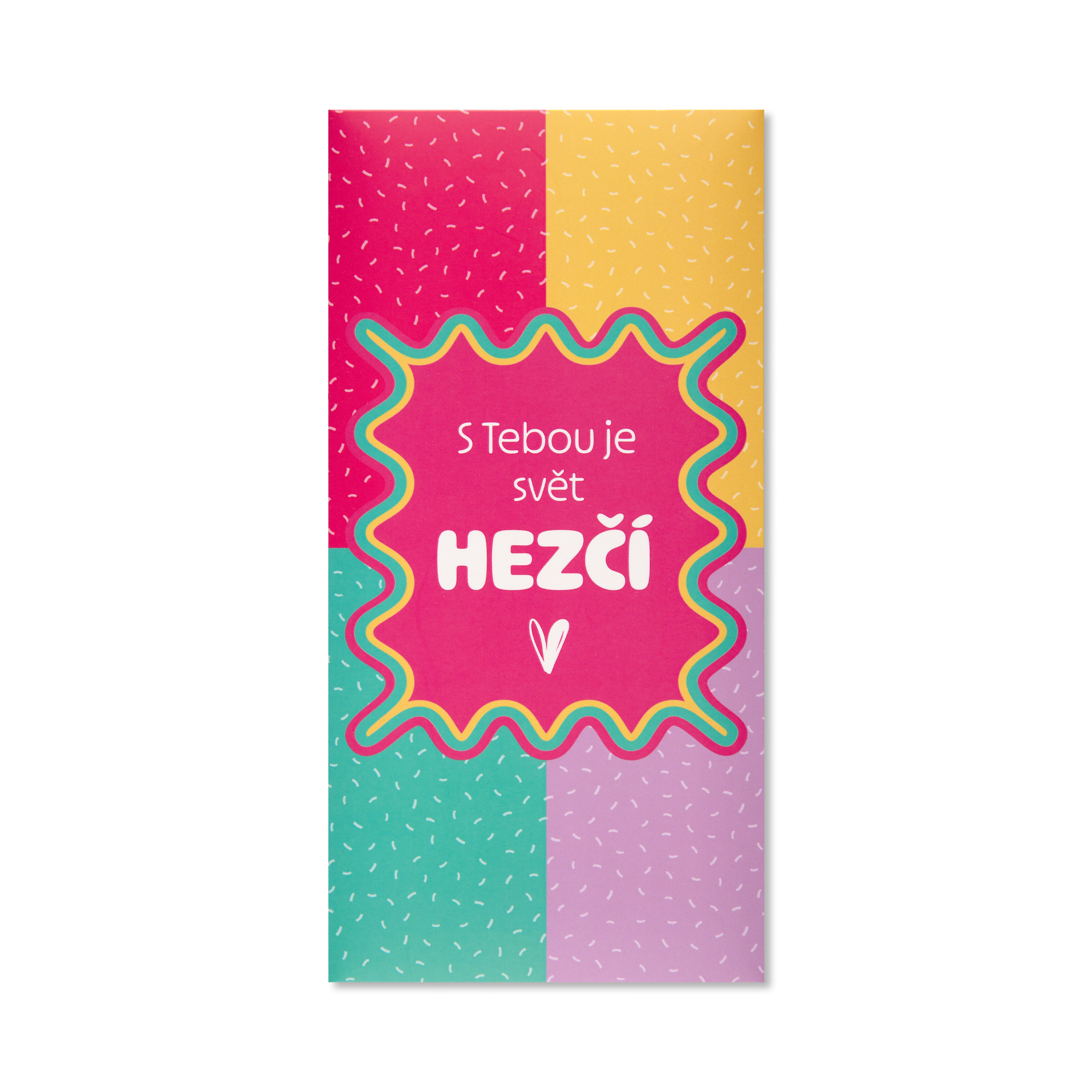 Darujte ten nejsladší dárek na světě, darujte čokoládu! Každá tabulka je víc než jen lahodný mléčný poklad. Je zabalená do úchvatného, barevného designu, který okamžitě upoutá a vykouzlí úsměv. Ať už je to zářivá duha, hravé květiny, nebo tajuplná modrá noc, naše obaly jsou malé umělecké dílo, které dodá vašemu dárku jedinečný šmrnc. Hmotnost: 100 g Rozměry: 10,5 × 21 cm Mléčná čokoláda Složení: cukr, kakaové máslo, sušené plnotucné mléko, kakaová hmota, sušené odstředěné mléko, sušená syrovátka (z mléka), emulgátor sójový lecitin, přírodní aroma. Kakaová sušina: minimálně 31%. Mléčná sušina: minimálně 19 %. Zdroj vápníku. Alergeny: Obsahuje sóju a mléko (6,7), může obsahovat stopy obilovin obsahující lepek, arašídy a skořápkové plody (1,5,8) Výživové údaje na 100 g: energetická hodnota 2332 kJ/554 kcal tuky 33 g – z toho nasycené mastné kyseliny 21 g sacharidy 58 g – z toho cukry 55 g bílkoviny 5,5 g sůl 0,34 g Hmotnost: 100 g Skladujte v suchu, chraňte před teplem.