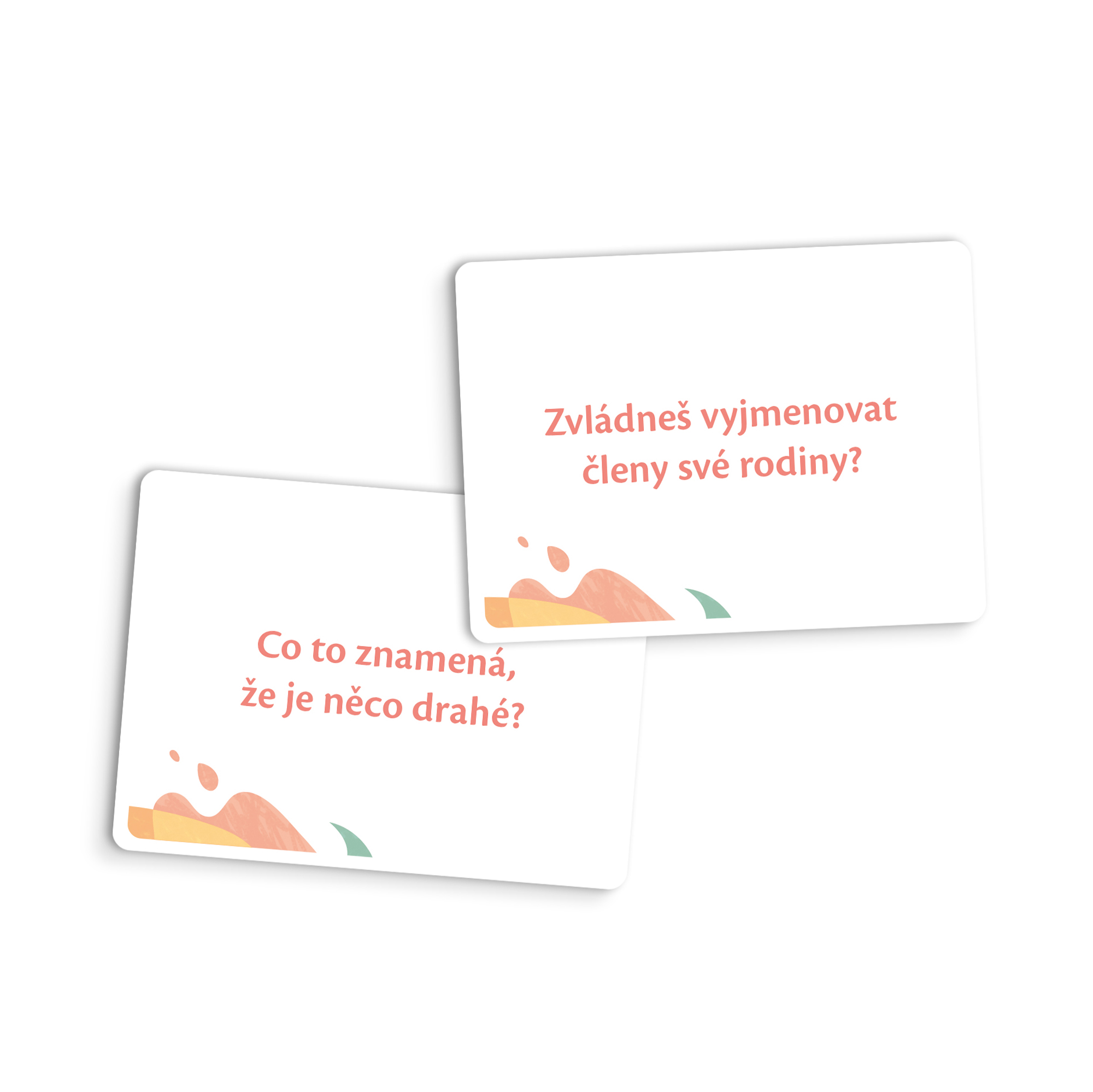 Na kus řeči jsou sady konverzačních karet, jejichž účelem je pomoci rozproudit či obohatit rozhovory o zajímavá témata, k nimž se třeba často obtížně hledají cesty. Varianta Na kus řeči – S předškoláky otevírá dveře do světa přemýšlení, vyprávění a objevování. Každá karta přináší zábavné otázky, které rozpovídají i tiché myšky. Děti od 3 let mají možnost sdílet své nápady, rozvíjet představivost a učit se vyjadřovat své myšlenky. Hravě tak podpoříte diskuzi v rodině, ve školce nebo v jakémkoli jiném dětském kolektivu. Na kus řeči sice není tak úplně hra, protože nemá klasická herní pravidla. „Hráči“ ale mohou například každý táhnout pět karet s otázkami, ty si navzájem položit a rozpovídat se na daná témata. Otázky lze také přeskakovat, nebo už na začátku „partie“ vyškrtnout, pokud jsou pro někoho nepříjemné. Hra obsahuje: 89 karet s otázkami, 10 prázdných karet pro vlastní otázky a návod s tipy.