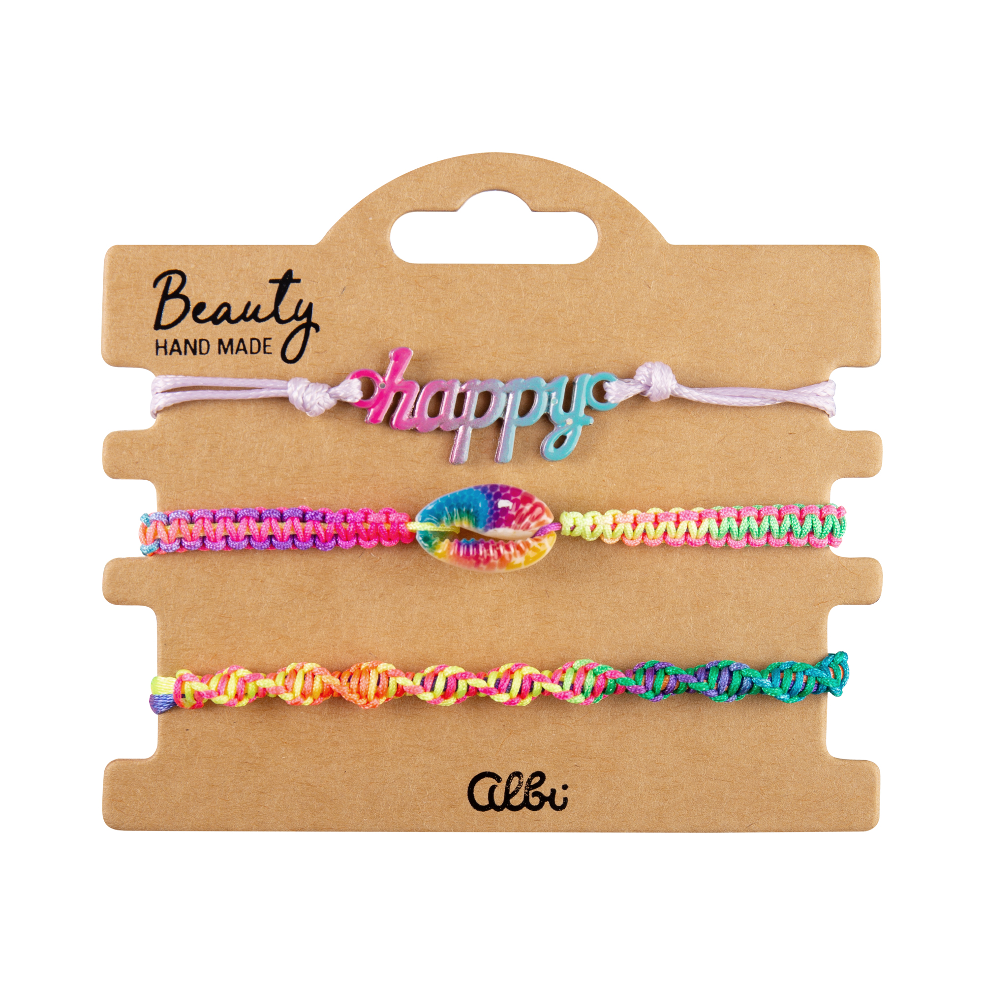Sada 3 náramků uspokojí vaší touhu po parádění. Elegantní i vesele barevné designy potěší každého. Každý náramek je jedinečný – od minimalistického designu, přes barevnou explozi, až po kombinaci jemných korálků a třpytivých detailů. Perfektní pro každou příležitost, nositelné samostatně i dohromady. Velikost náramku je nastavitelná.