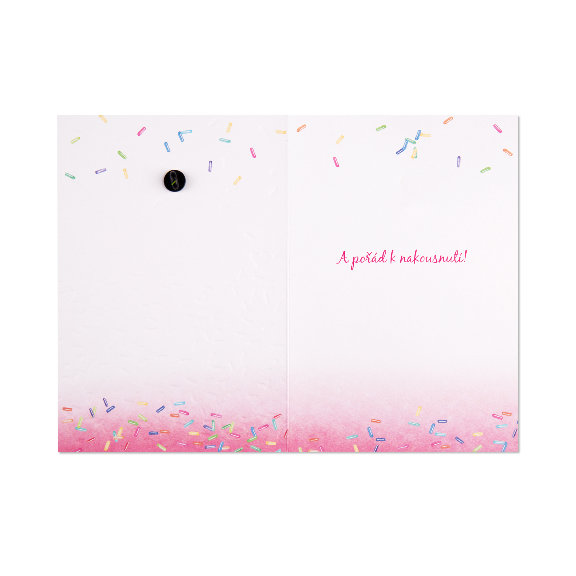Klasické papírové přání je nedílnou součástí každé významné události. Krásně ilustrované přání k narozeninám však skrývá něco navíc. Malou roztomilou brož ve tvaru růžového donutu, která nejen ozdobí celé přáníčko, ale vytvoří vašim blízkým dlouhodobou radost, kterou mohou mít stále při sobě. Brož stačí jednoduše odendat a připnout na bundu či batoh. Text přání: O rok starší? A pořád k nakousnutí!