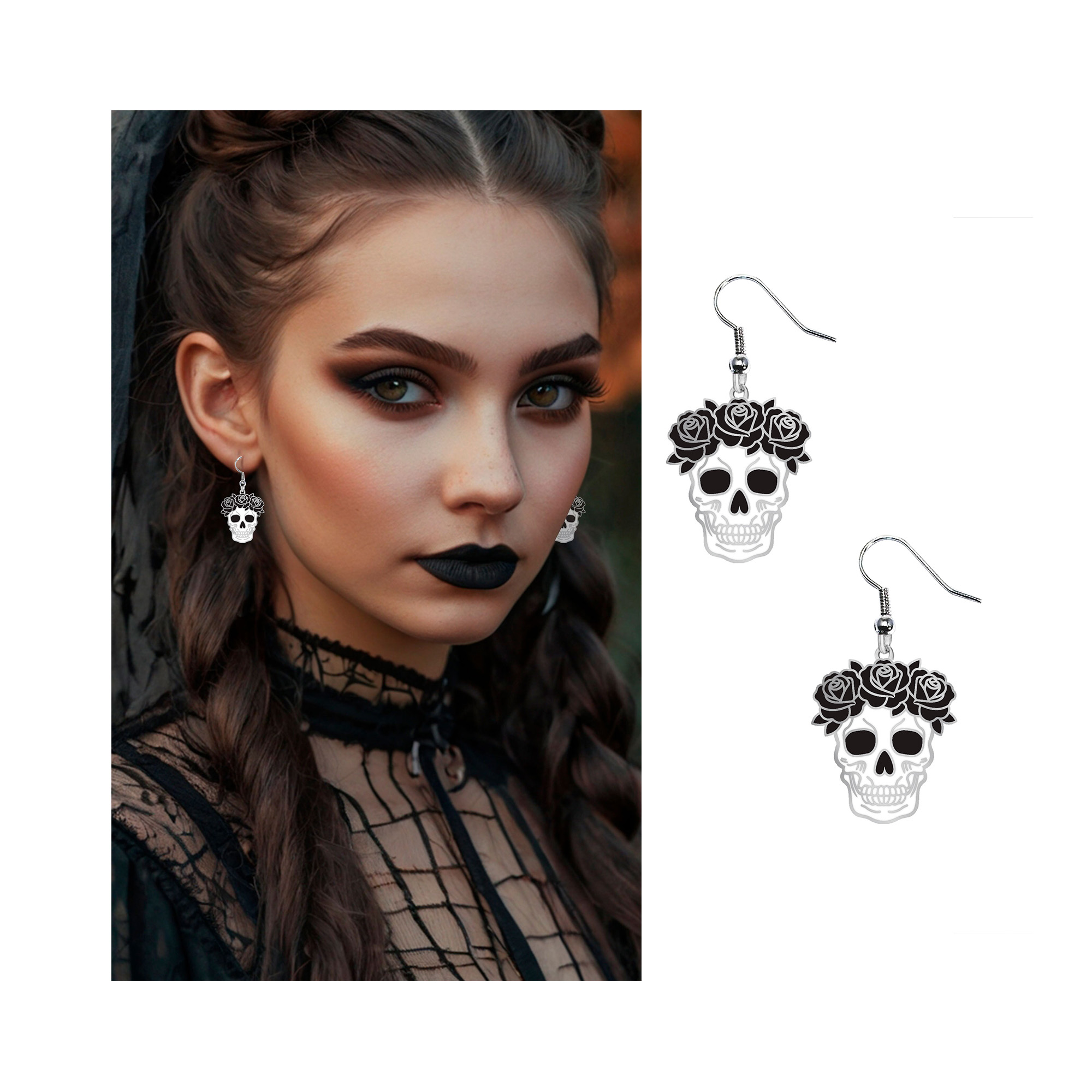 Dolaďte svůj halloweenský outfit do posledního detailu – ozdobte si uši náušnicemi ve tvaru lebek s květy! Perfektně se hodí také k oslavám mexického svátku Den mrtvých (Día de los Muertos), kdy lebky symbolizují radostné oslavy života a smrti. Pro další párty doplňky a dekorace s podobným motivem můžete navštívit naše tematické kategorie Halloween nebo Mexická párty. Materiál: kov a pryskyřice Balení obsahuje: 1× pár náušnic Není vhodné pro děti do 14 let.