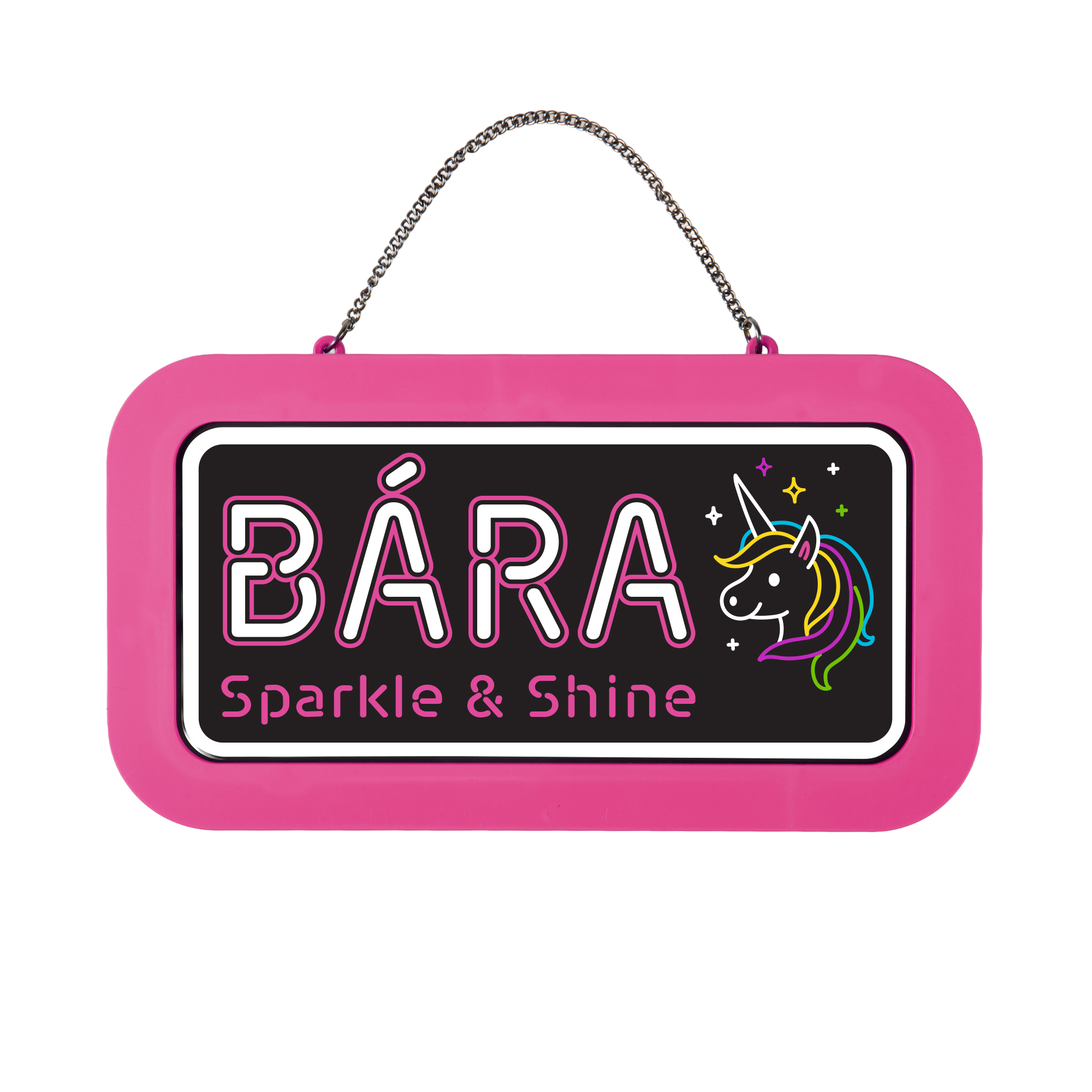 Rozsviťte dětský pokoj originálním světlem! Tato neonová cedulka rozzáří každý koutek či dveře a udělá radost všem dětem. Díky praktické zadní opěrce ji můžete snadno postavit na stůl či poličku, nebo se dá jednoduše zavěsit pomocí řetízku. Cedulka svítí po zapnutí vypínačem ON/OFF a funguje na baterie (2 × AAA) – žádné kabely, žádné starosti.  Vybírat můžete mezi oblíbenými jmény pro kluky i holky, nebo v univerzální variantě bez nápisu, na kterou si můžete mazatelným fixem napsat vlastní jméno či vzkaz (fix není součástí balení). Skvělý dárek pro každého puberťáka – perfektní na vytyčení vlastního království! Rozměry cedulky: 18,7 × 10,3 cm Baterie: 2 × AAA (baterie jsou součástí balení)