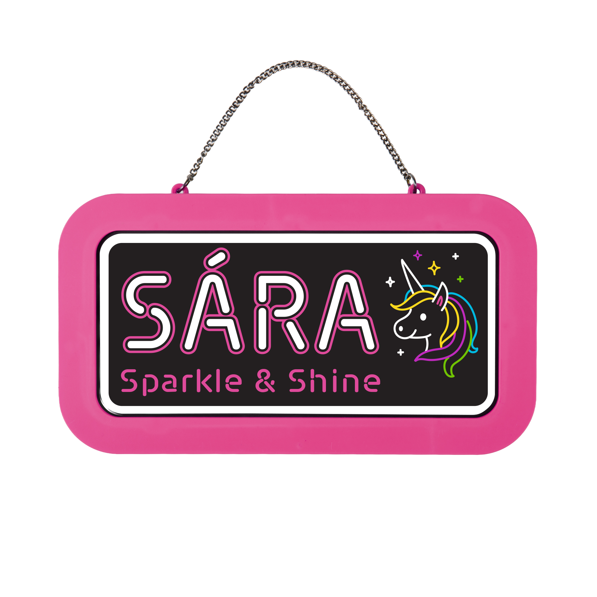 Rozsviťte dětský pokoj originálním světlem! Tato neonová cedulka rozzáří každý koutek či dveře a udělá radost všem dětem. Díky praktické zadní opěrce ji můžete snadno postavit na stůl či poličku, nebo se dá jednoduše zavěsit pomocí řetízku. Cedulka svítí po zapnutí vypínačem ON/OFF a funguje na baterie (2 × AAA) – žádné kabely, žádné starosti.  Vybírat můžete mezi oblíbenými jmény pro kluky i holky, nebo v univerzální variantě bez nápisu, na kterou si můžete mazatelným fixem napsat vlastní jméno či vzkaz (fix není součástí balení). Skvělý dárek pro každého puberťáka – perfektní na vytyčení vlastního království! Rozměry cedulky: 18,7 × 10,3 cm Baterie: 2 × AAA (baterie jsou součástí balení)