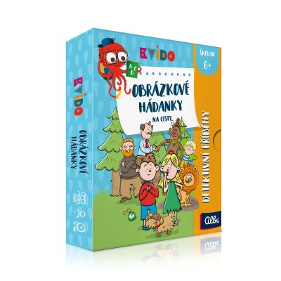 Obrázkové hádanky na cesty od Kvída jsou originální ilustrované hádanky od českých autorů, které rozvíjí znalosti dětí v různých oblastech. Na 40 oboustranných kartičkách na děti čekají nápadité a zábavné úkoly, jako například dokreslování, spojování, hledání rozdílů, počítání, vybírání správné odpovědi a další. Úkoly se řeší pomocí mazatelného fixu, který je součástí balení. Díky tomu se mohou děti k úkolům opakovaně vracet nebo si je opravovat. Předškolákům přečte zadání rodič. Obrázkové hádanky rozvíjí koncentraci, logické uvažování, pozornost, grafomotoriku a specifické znalosti z různých oblastí. Správný hospodář rozvíjí základní znalosti v oblasti finanční gramotnosti a vlastní zodpovědnosti. Vznik ve spolupráci se vzdělávacím programem Abeceda peněz České Spořitelny. Vzhůru za zvířátky rozvíjí znalosti o zvířátkách v různých prostředích. Zvládnu to bezpečně rozvíjí základní znalosti v oblasti vlastní bezpečnosti a ochrany zdraví. České pohádky rozvíjí znalosti o tradičních českých pohádkách. Detektivní příběhy rozvíjí zájem o objevování a řešení záhad detektivních příběhů. Těším se do 1. třídy rozvíjí grafomotoriku, základní početní úkoly a vnímání času a prostoru. Obrázkové hádanky jsou vhodné na cesty dopravními prostředky, na výlety nebo do čekárny u lékaře. Hra Obrázkové hádanky na cesty obsahují: 40 oboustranných kartiček s obrázkovými hádankami spojenými plastovým šroubem a mazací fix.