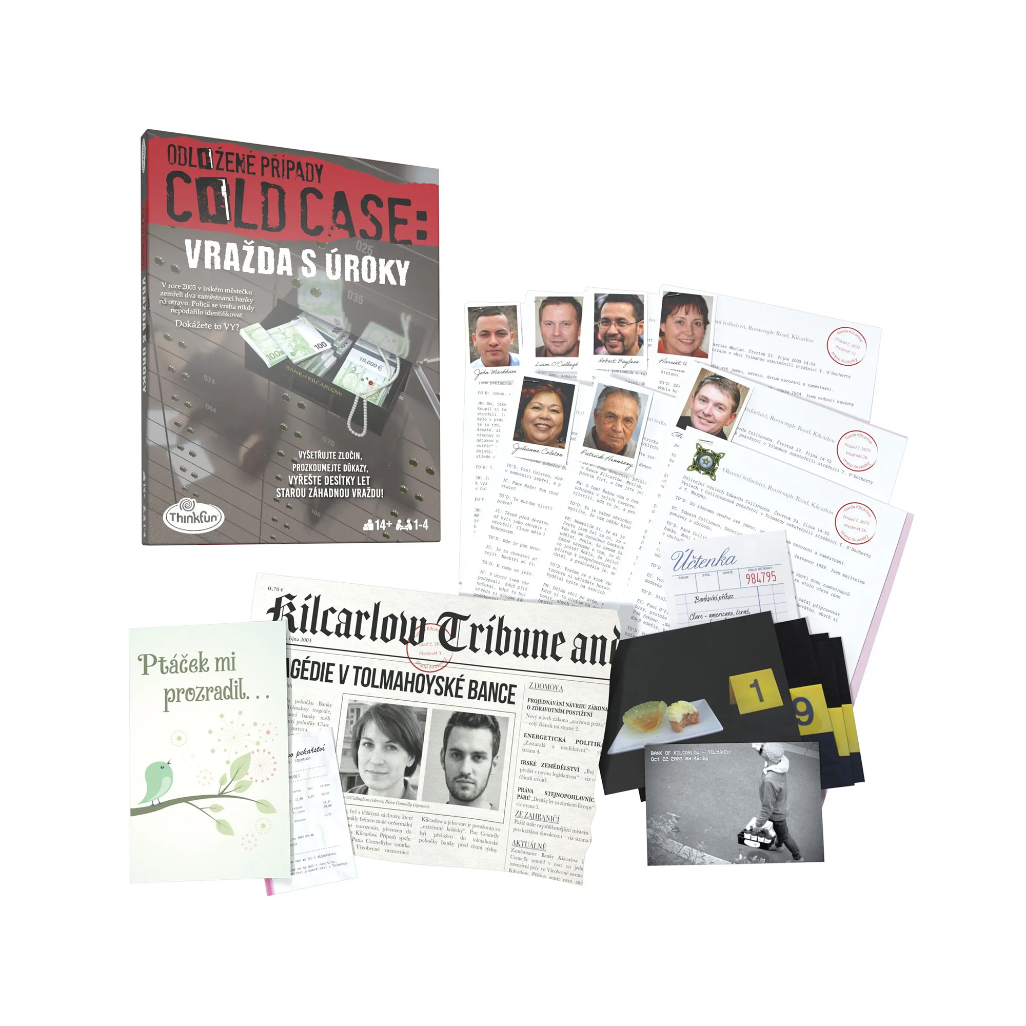 Vyřešte vraždu, která stále trápí irské městečko. Ve hře Odložené případy: Vražda s úroky budete vyšetřovat smrt Davea Connellyho a Clare O‘Callaghan a pokusíte se zločin konečně rozlousknout. Dokážete tento odložený případ vyřešit? Uvnitř krabice najdete realistické dokumenty týkající se zločinu a obsahující vše, co k rozluštění případu potřebujete. Prozkoumejte stopy, dejte dohromady důkazy a vyřešte vraždy. Poté své odpovědi odešlete online a zjistěte, zda máte pravdu a zda jste konečně do Tolmahoy přinesli spravedlnost, kterou si zaslouží. Vražda s úroky se skvěle hodí pro malou skupinu přátel i pro jednoho hráče. Hra je v českém jazyce. Obsah hry: policejní poznámky, výstřižek z novin, místní mapu, fotografie a výslechy podezřelých, kapitolu z průvodce, nemocniční, laboratorní a policejní zprávy, přání k narozeninám, stvrzenku, ručně psané poznámky, fotografie z místa činu, bankovní dokumenty, řidičský průkaz, záznam z průmyslové kamery a další důkazy